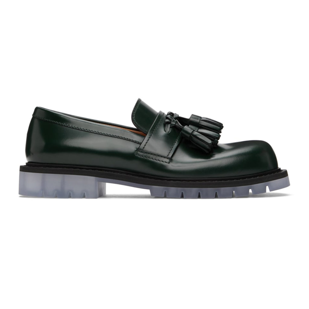 こちらも再び[ボッテガ・ヴェネタ]のタッセル・ローファー。ポリッシュ仕上げカーフスキンで、こちらもラウンドトゥ。普通に比べてタッセルの数が多いのが遊び心あります。