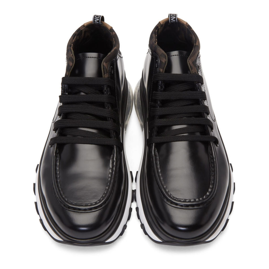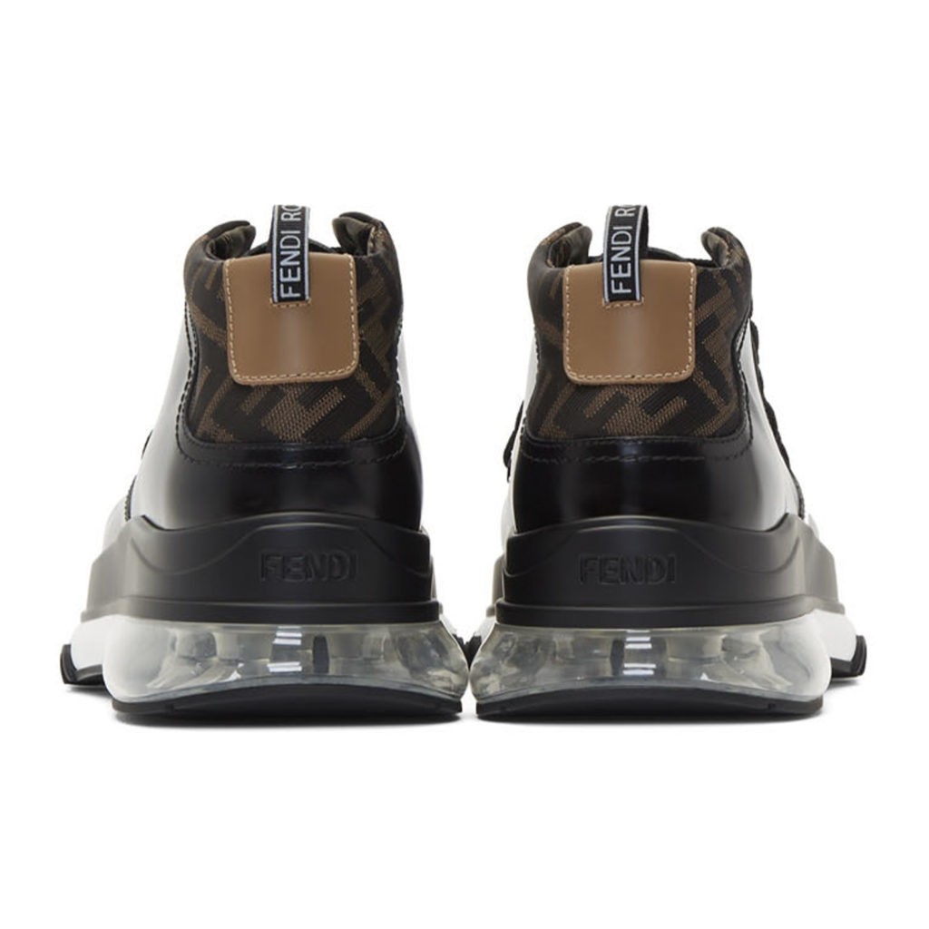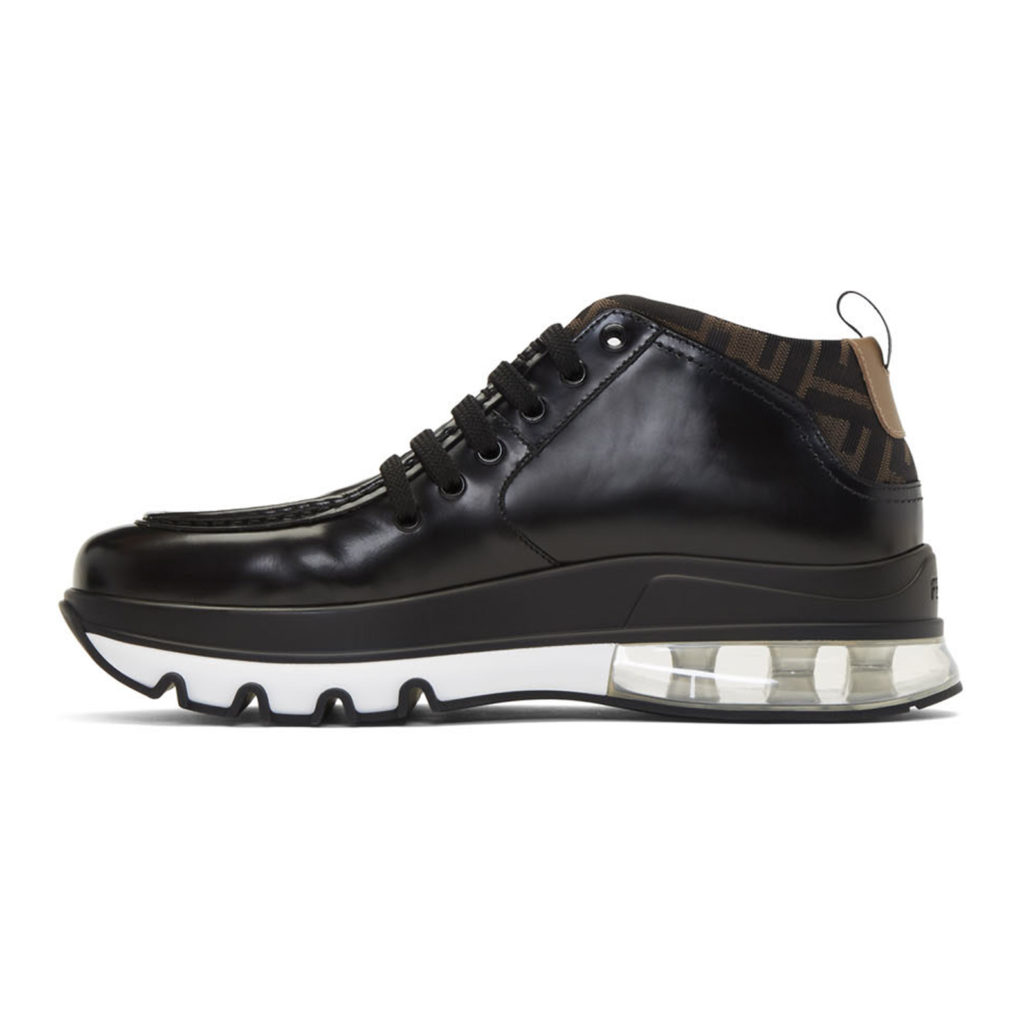 最後に[ブーツ編]。まずは[FENDI(フェンディ)]から。ポリッシュ仕上げカーフスキンのアンクルハイ ブーツで、トレッキングシューズのような雰囲気もありますが、後方にはおなじみの[FENDI]のグラフィックテキスタイルが高級感を醸し出しています。
