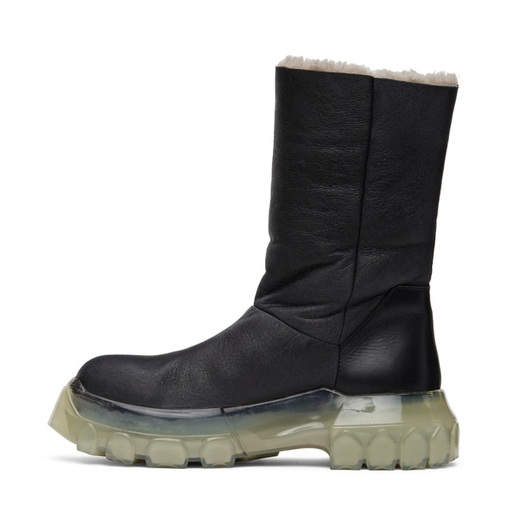 [RICK OWENS(リック オウエンス)]からもこんなブーツが。グレイン カーフスキンのカーフハイ チェルシー ブーツで、ソールのサイドはまるで“歯”のようなデザインでインパクトあります。内側はモコモコとして暖かそう。価格も含めてなかなかレベルの高い一足ですが格好いいです。