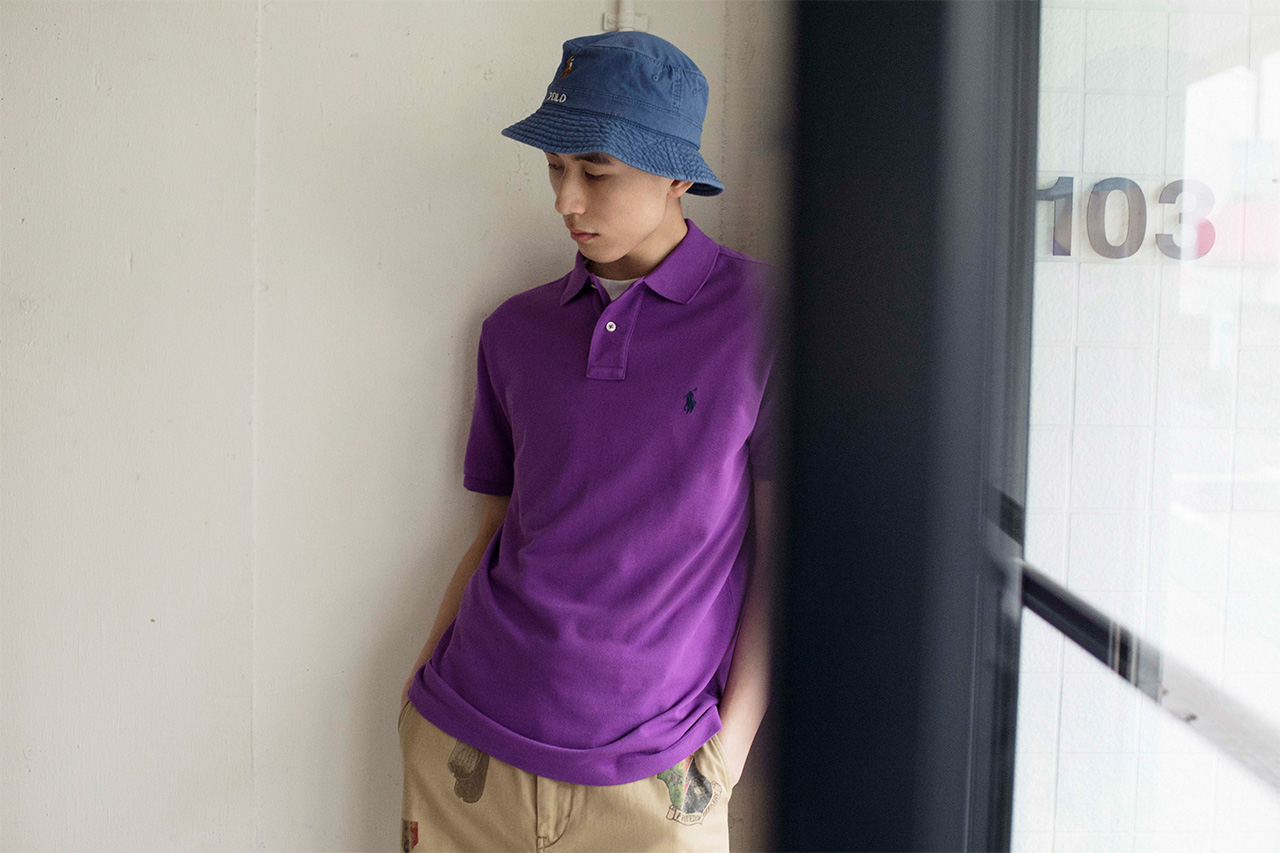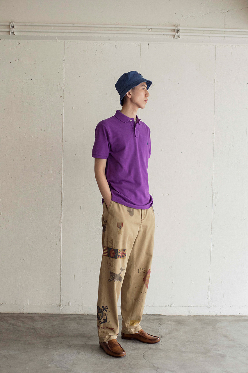 上品かつカジュアル、そしてアイコニックな[POLO RALPH LAUREN(ポロ ラルフ ローレン)]のポロシャツは、豊富なカラーが魅力的。シャツ自体の色とロゴの色の組み合わせの妙も手伝って、つい何色か持っておきたくなる。ダーク系から爽やかな色まで揃っているので、ファッションのテイストに合わせてチョイスが可能。現在オンラインストアでは12色のカラーが確認できるが、今回はポロシャツにはあまり多く見られない濃い目のパープルを推しておきたい。ベージュのチノとの愛称も抜群だ。