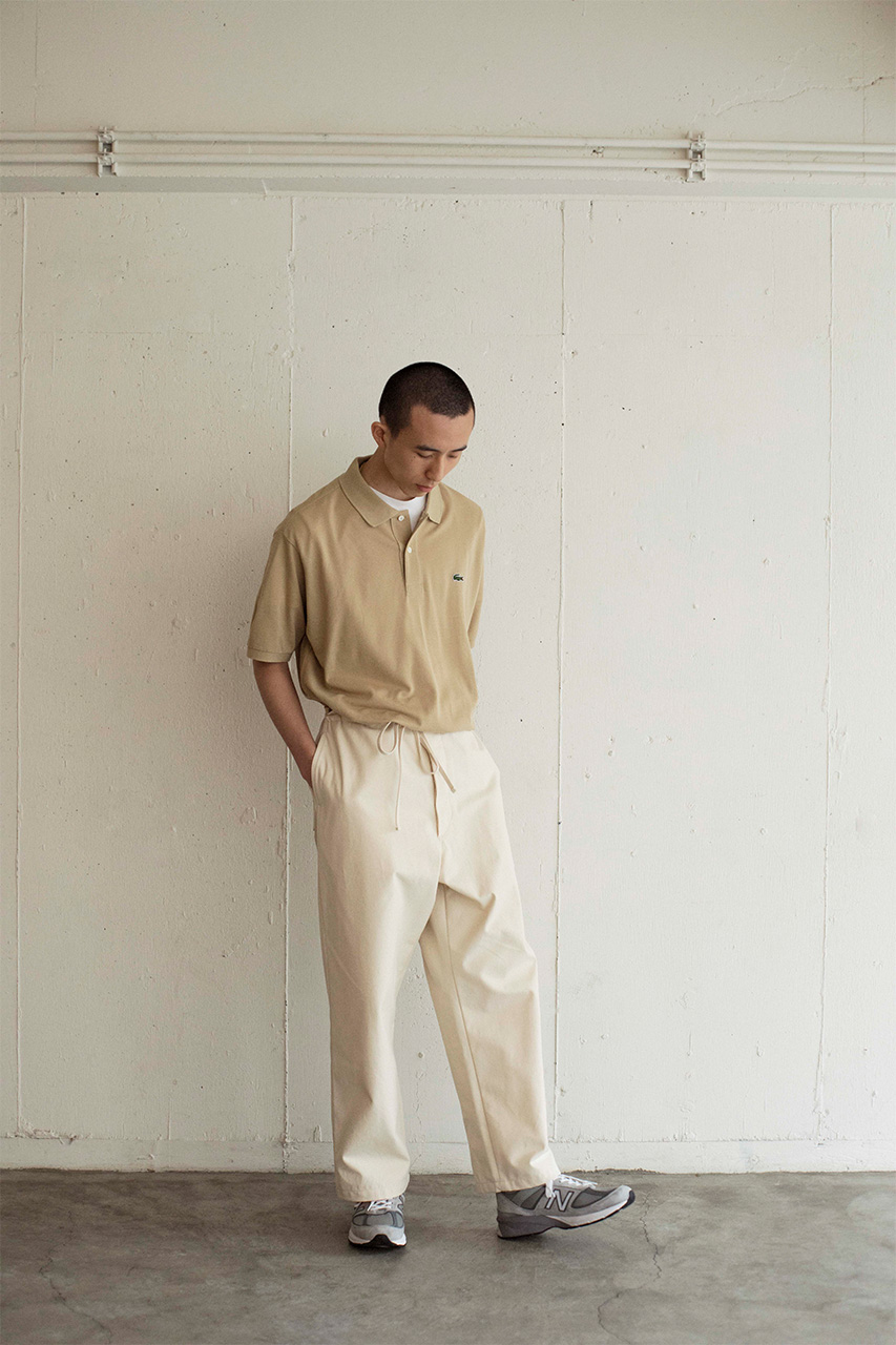 ポロシャツ ¥13,000+TAX (LACOSTE/ラコステお客様センター)、パンツ¥21,000+TAX (Mexipa/アンシングス)、シューズ ¥28,000+TAX (New Balance/ニューバランス ジャパンお客様相談室)