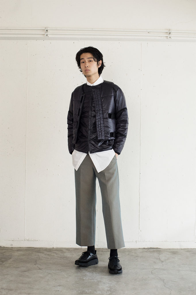 コート¥230,000+TAX、ポロシャツ¥26,000+TAX、パンツ¥36,000+TAX(VEILANCE/アークテリクス コールセンター)、シューズ¥33,000+TAX(YOAK/ヘムトPR)