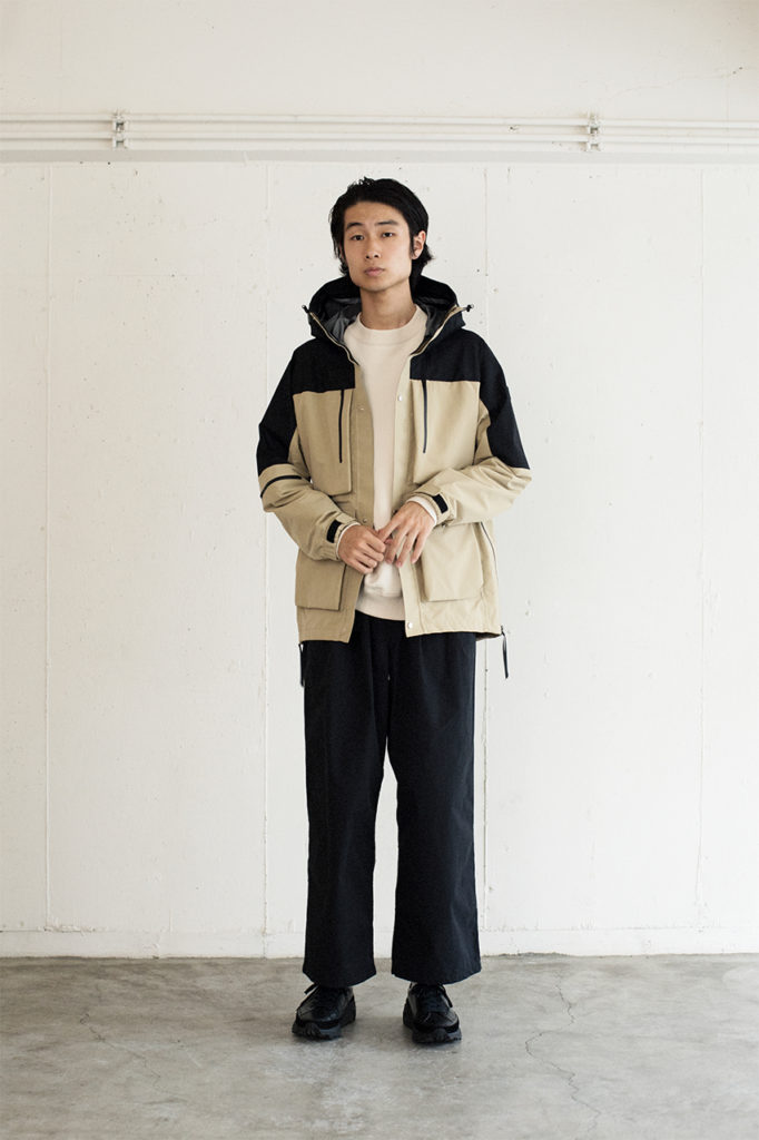 マウンテンジャケット¥58,000+TAX(Yeti)、スウェット¥18,000+TAX(EASTFAREAST/ともにブツヨク ストア)、パンツ¥23,000+TAX(FreshService/フレッシュサービス ヘッドクオーターズ)、シューズ¥33,000+TAX(YOAK/ヘムトPR)