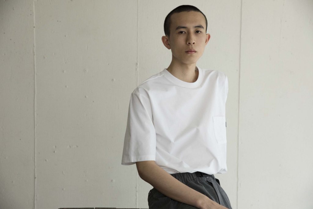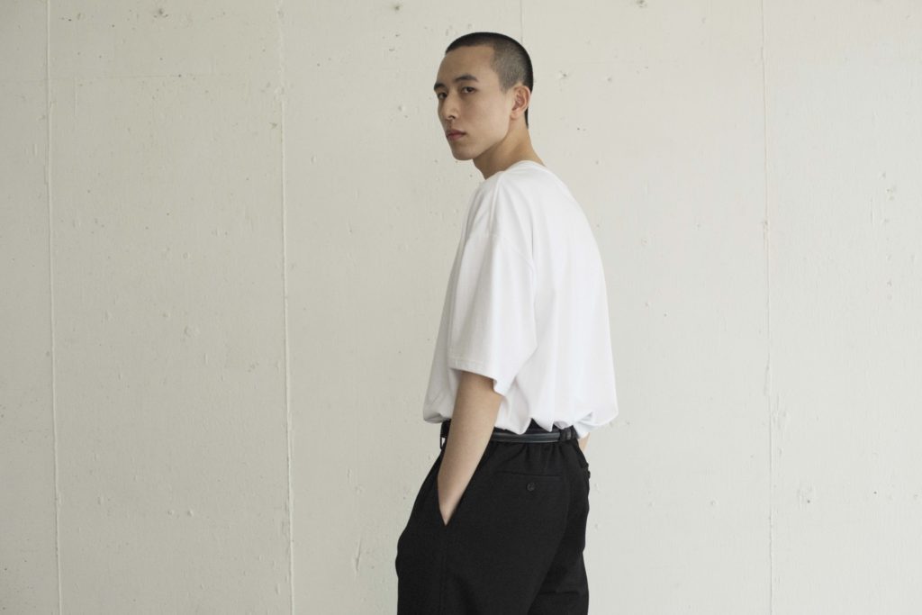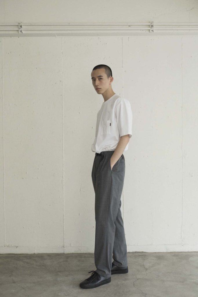 Tシャツ¥1,500+TAX(Uniqlo U (UNIQLO)/ユニクロ)、パンツ¥28,000+TAX(KHONOROGICA)、シューズ¥25,000(YOAK/ともにヘムトPR)、その他スタイリスト私物
