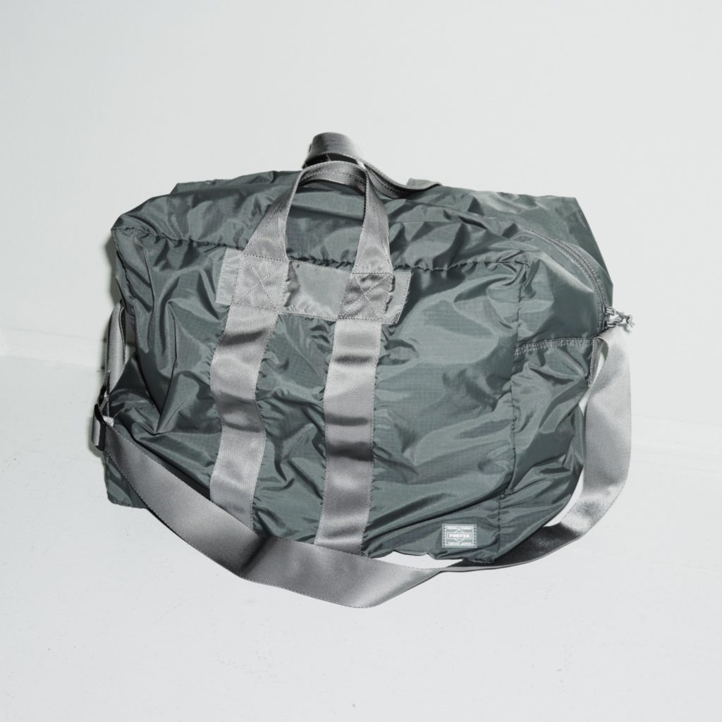 こちらも上の2WAY ダッフルバッグのカラー違いで、ポーターオフィシャルのオンラインストア限定色のグレー。このシリーズで使われているナイロンリップストップは、格子状にナイロン糸が織り込まれているので裂けに強く、仮に穴が空いても破れが広がらないため、軍用にも使用されている。薄手なのにタフネスを持ち合わせているのが”フレックス“シリーズの特徴だ。