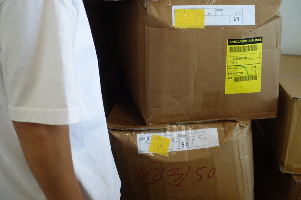 アメリカから空輸されてくる[MINE]。ダンボールの質感もアメリカそのもの。