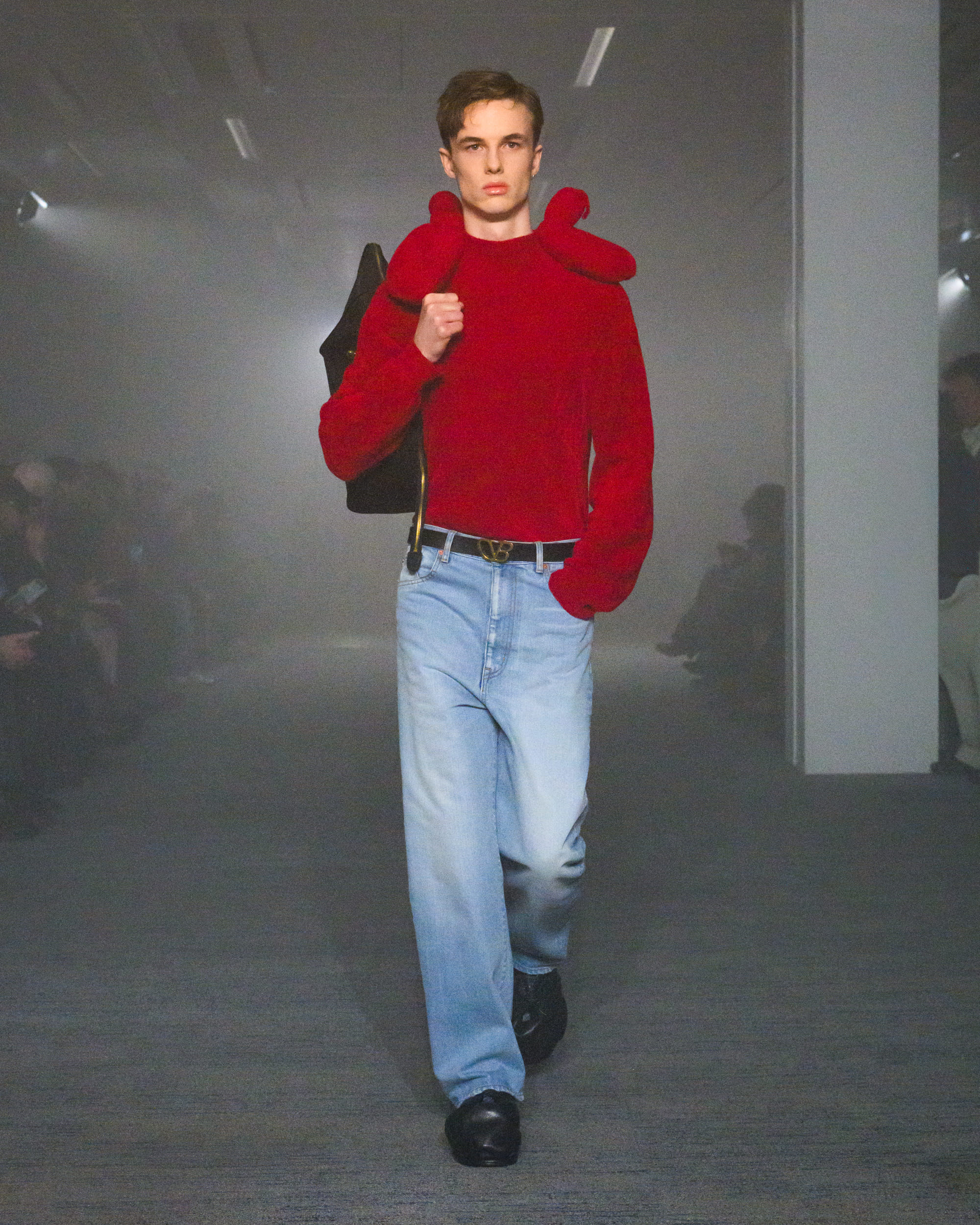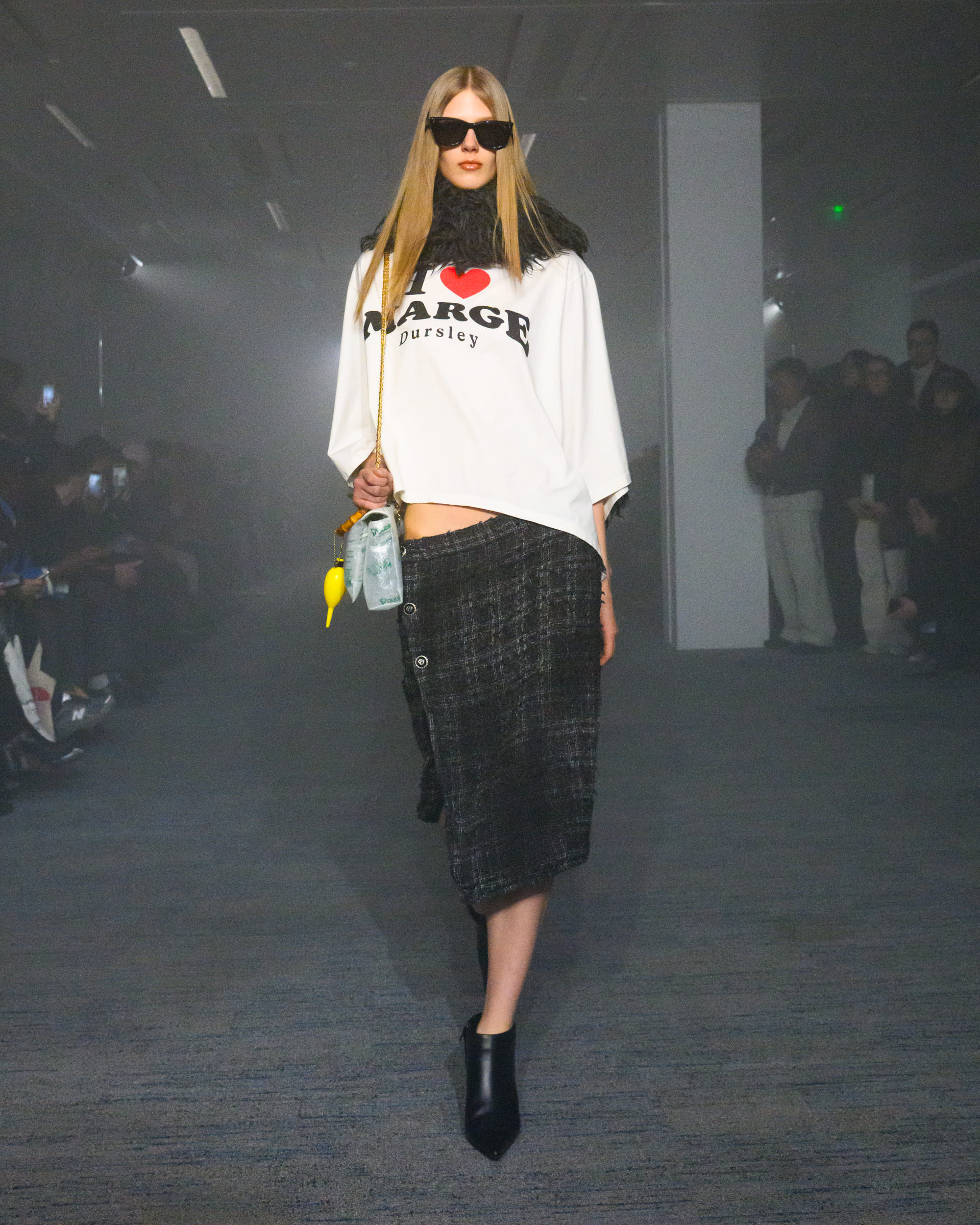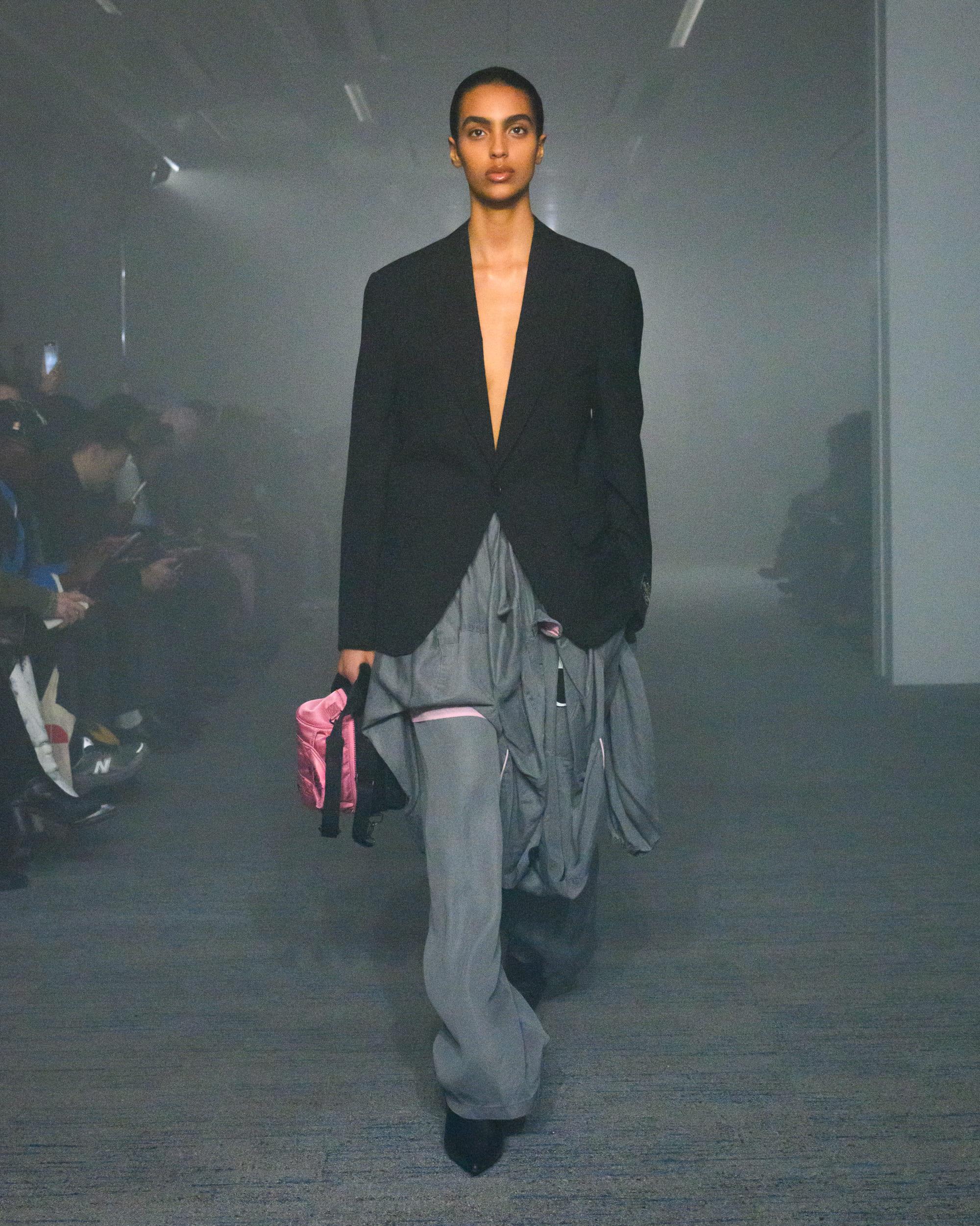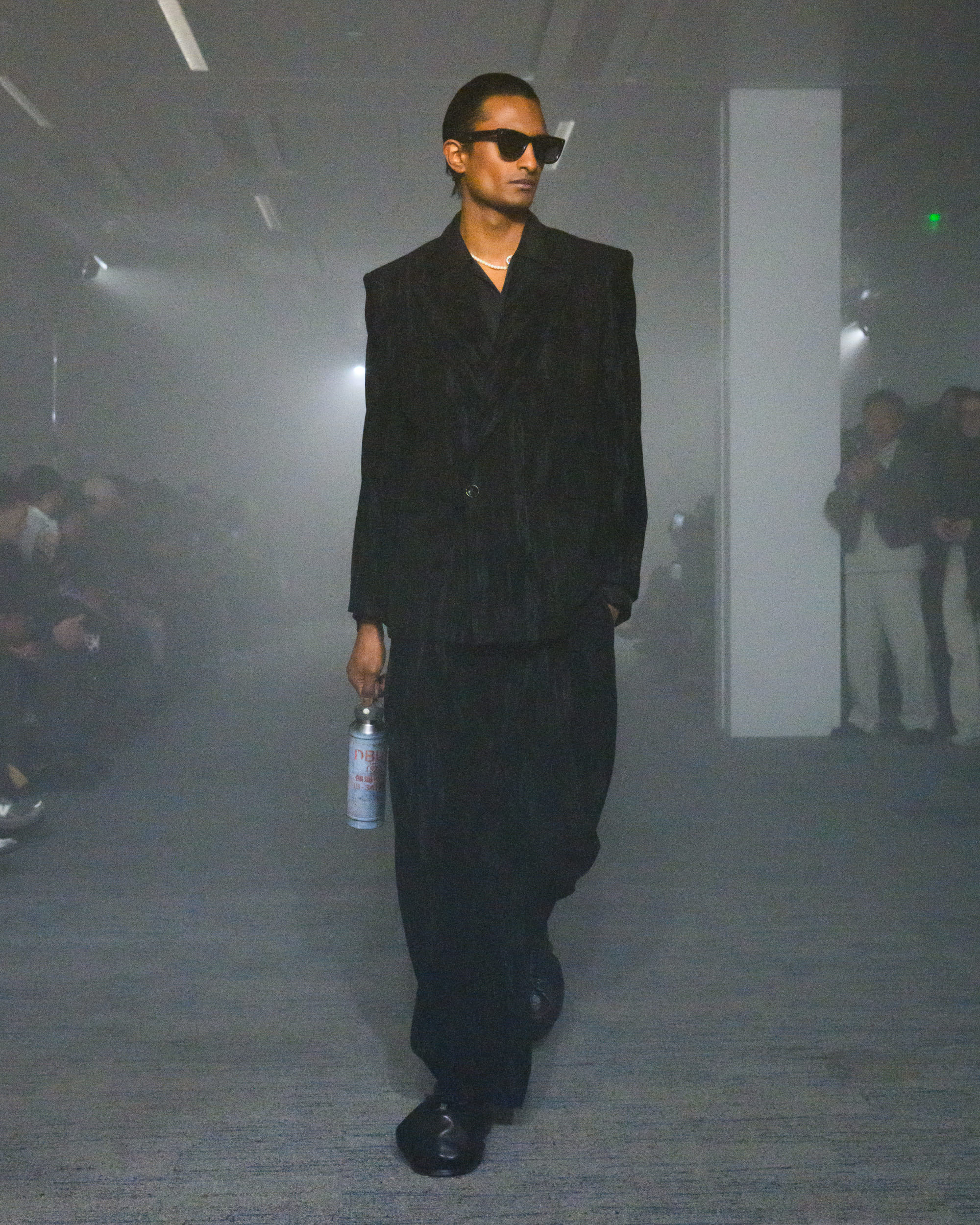 “AIR”と題されたコレクションでは、文字通り“空気から生まれた素材”として、CO2から生まれた糸、温室効果ガスを「食べる」微生物がつくるバイオベース樹脂、排気ガス由来の炭素を原料とするインクなどを採用。ユニークなデザインに目が行きがちではあるが、doubletは近年こうして環境に対して高い意識でコレクションに臨んでおり、今回もそれが発揮された形となった。