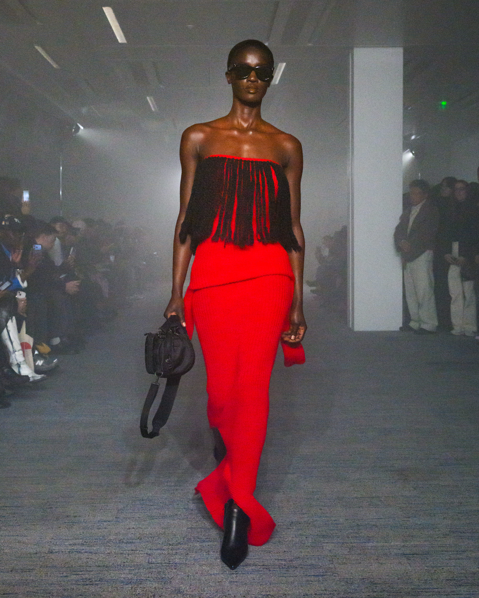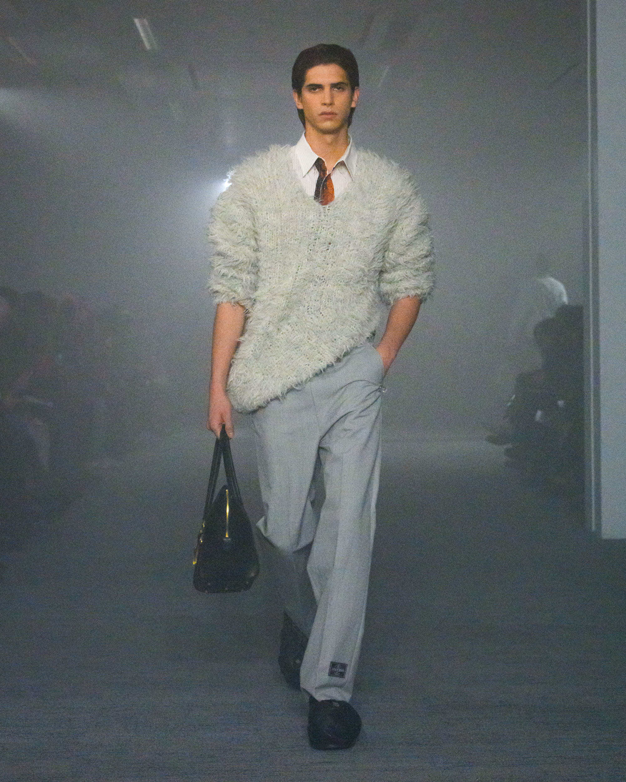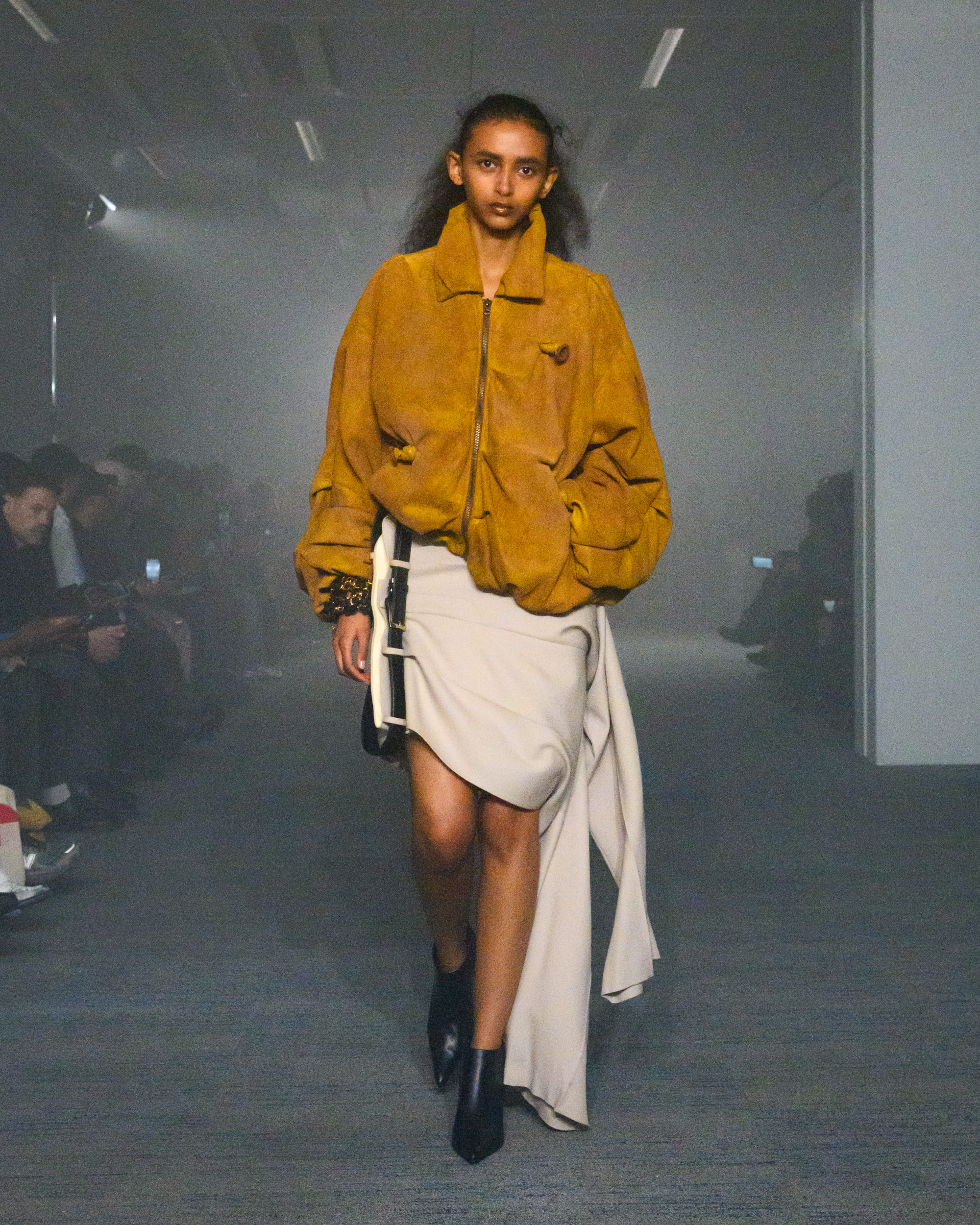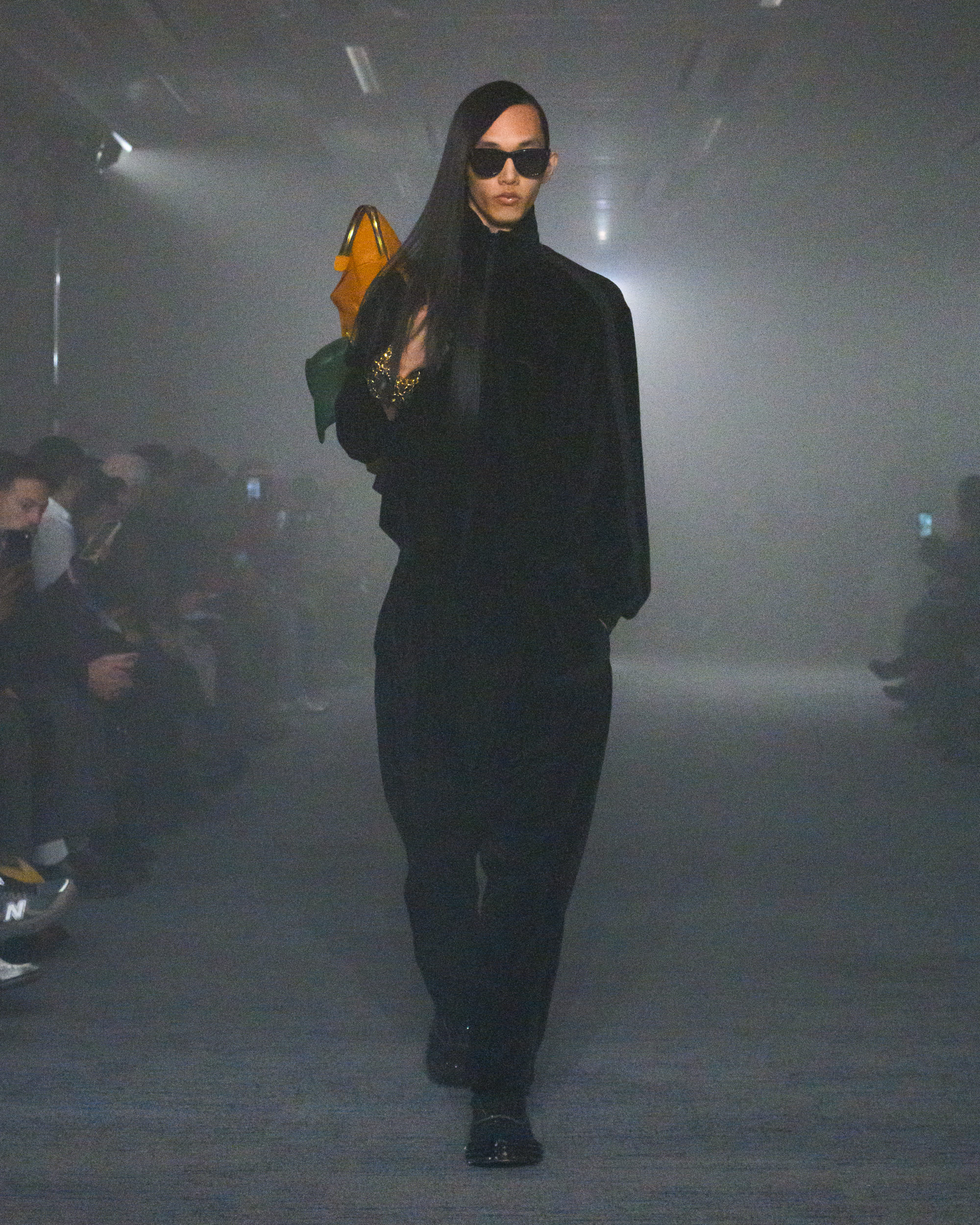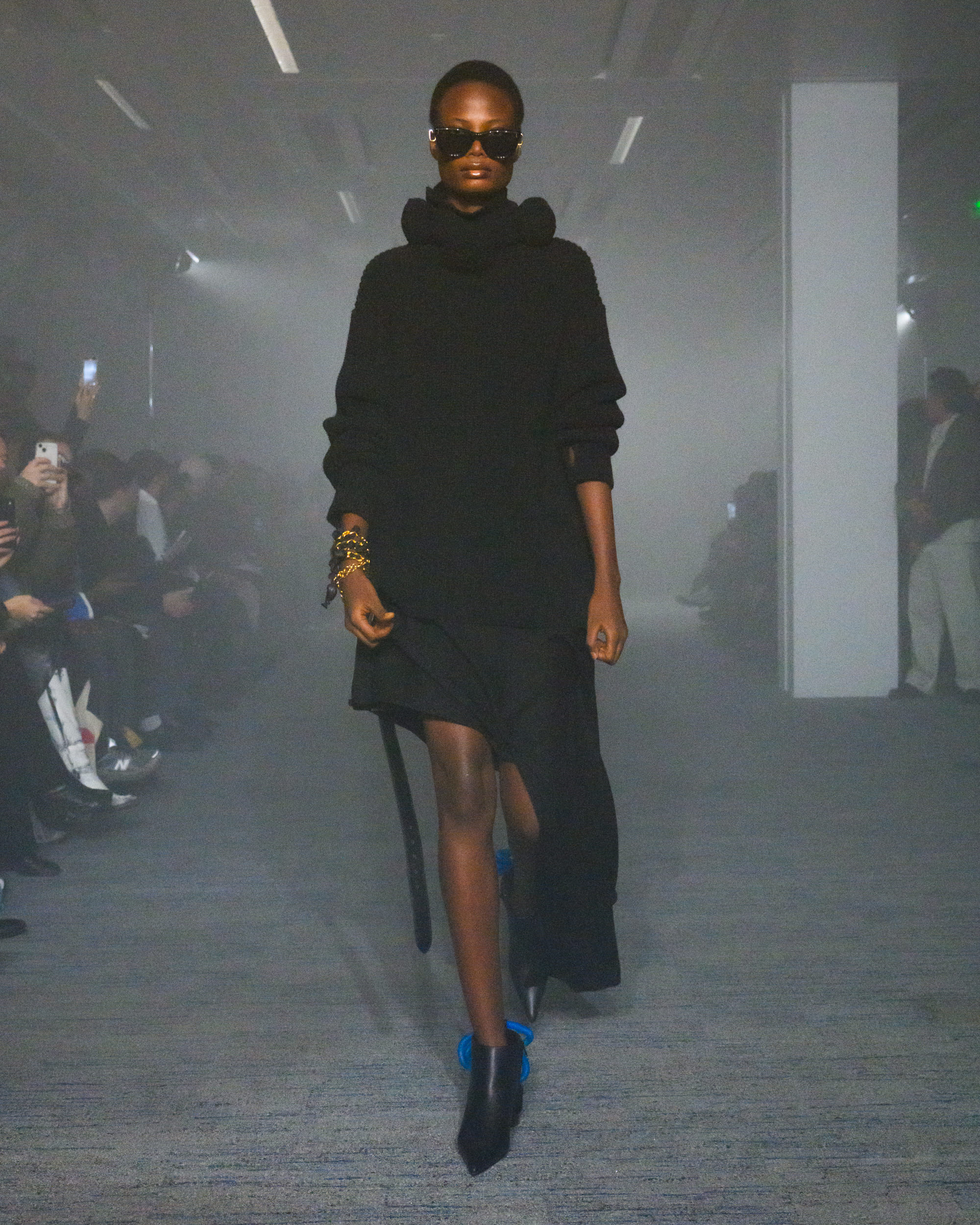 “AIR”と題されたコレクションでは、文字通り“空気から生まれた素材”として、CO2から生まれた糸、温室効果ガスを「食べる」微生物がつくるバイオベース樹脂、排気ガス由来の炭素を原料とするインクなどを採用。ユニークなデザインに目が行きがちではあるが、doubletは近年こうして環境に対して高い意識でコレクションに臨んでおり、今回もそれが発揮された形となった。