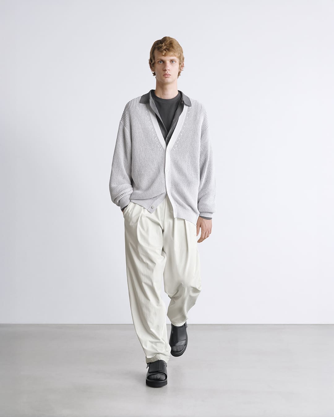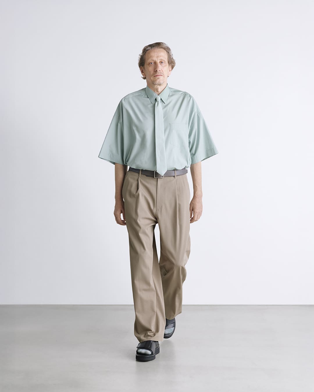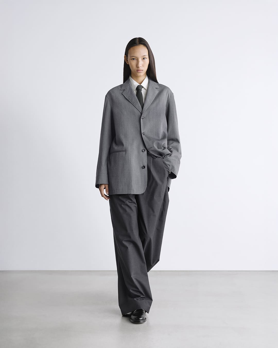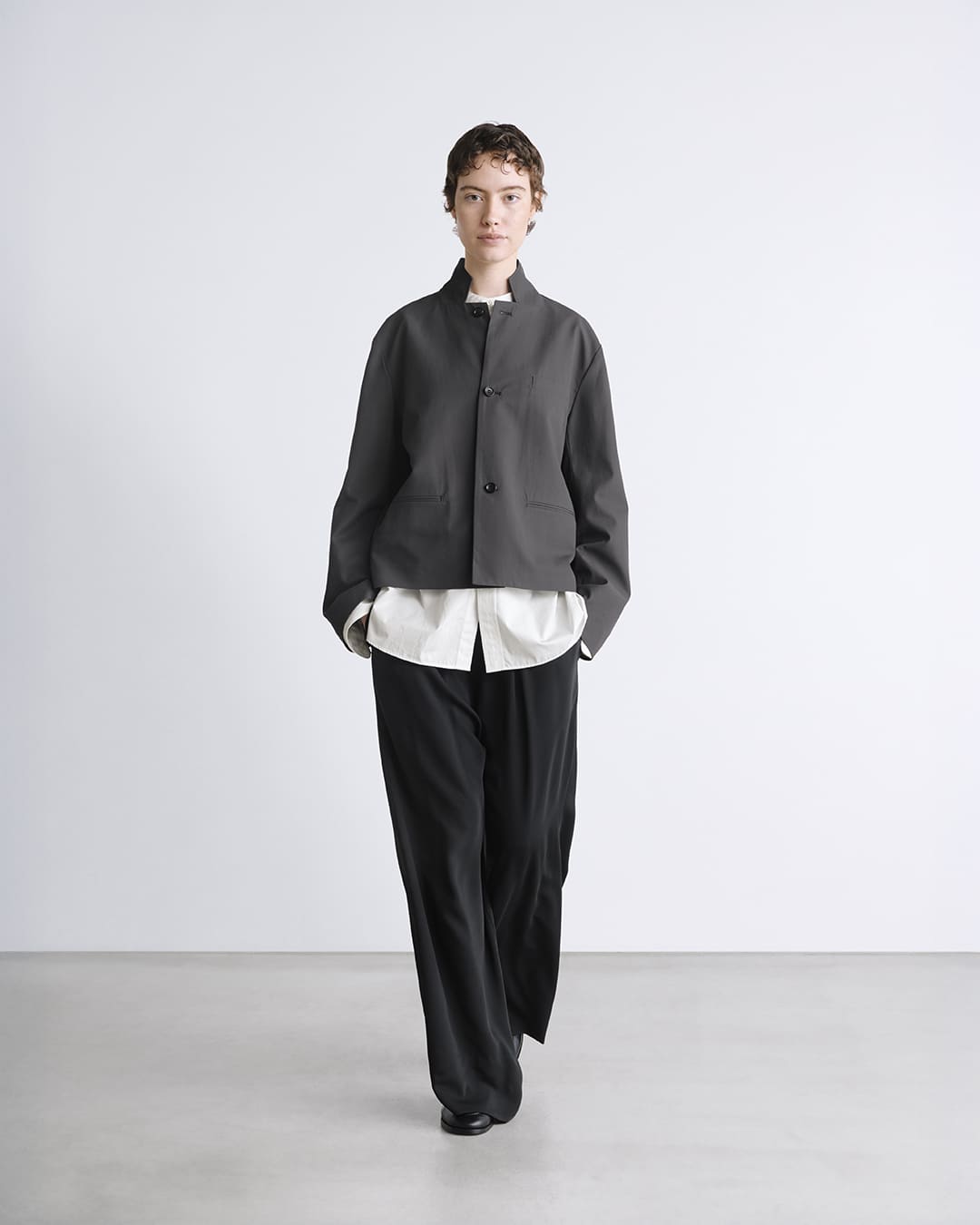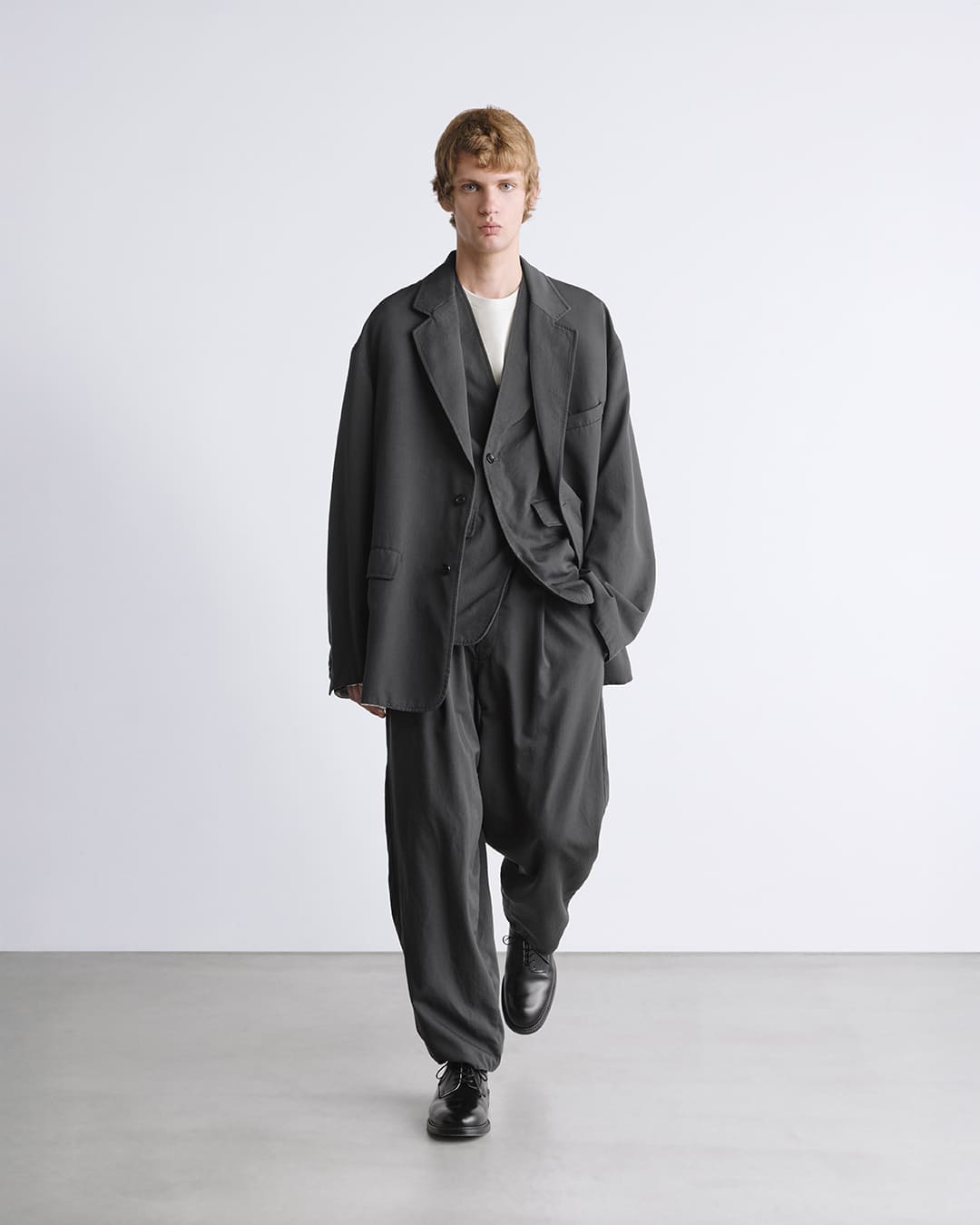 最新コレクションでは1980〜90年代に日常の装いの一部として存在したスーツやスラックスを、現代のシルエットと独自のミニマリズムで再解釈し、過去のドレスコードの残像を再構築。テーラリングの文脈を踏まえながらも、シルエットは緩やかに拡張され、重心やバランスが再考されている。