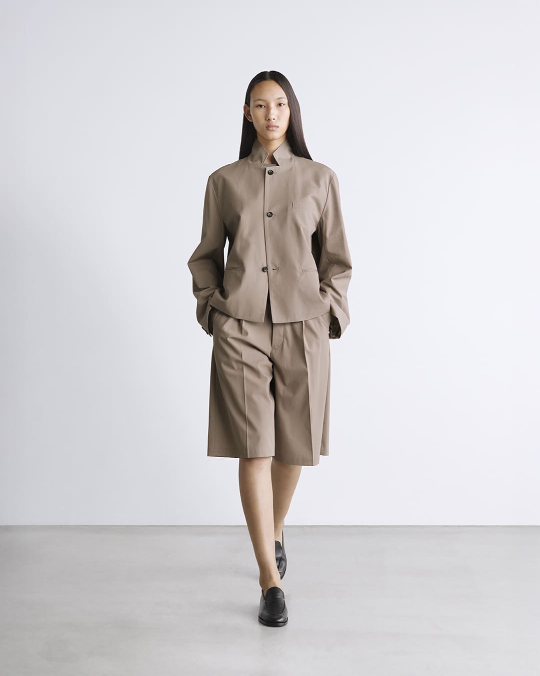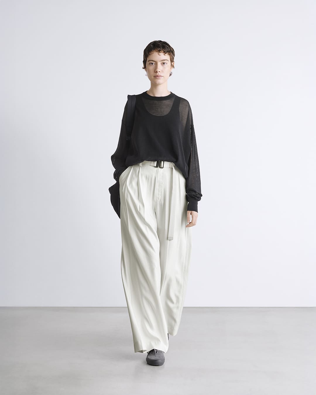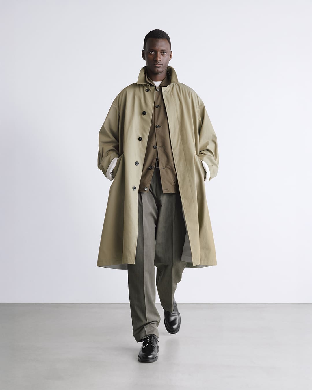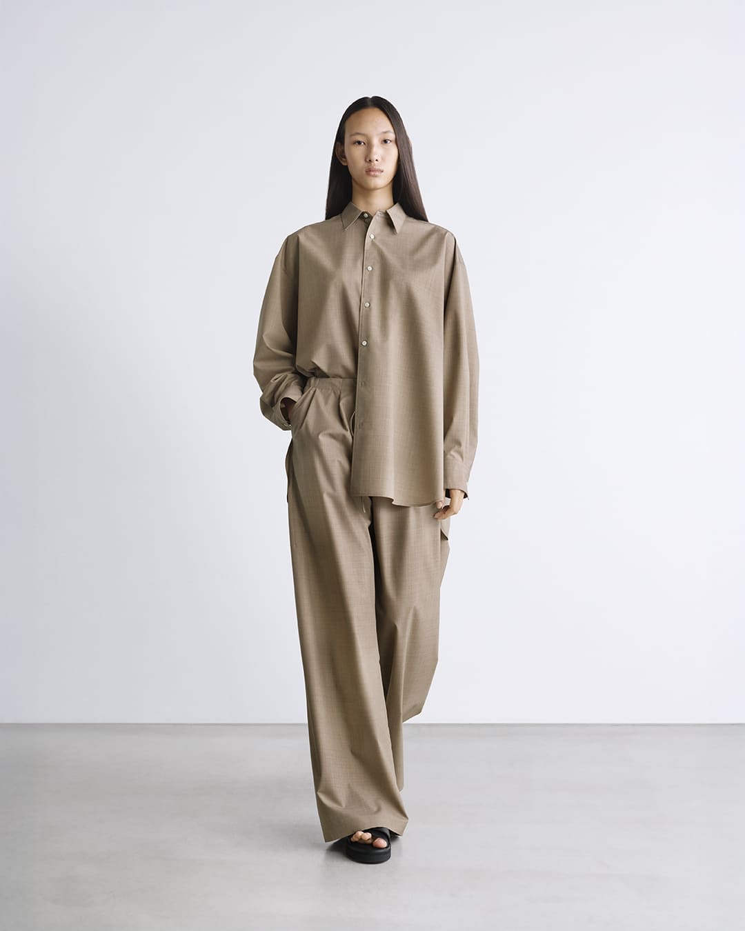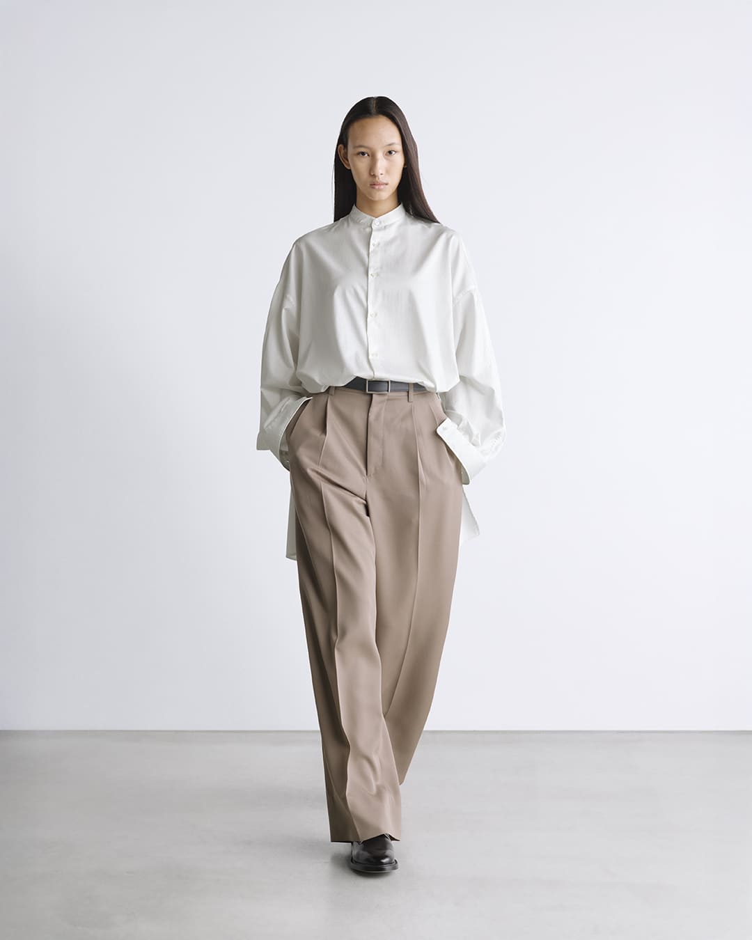 最新コレクションでは1980〜90年代に日常の装いの一部として存在したスーツやスラックスを、現代のシルエットと独自のミニマリズムで再解釈し、過去のドレスコードの残像を再構築。テーラリングの文脈を踏まえながらも、シルエットは緩やかに拡張され、重心やバランスが再考されている。