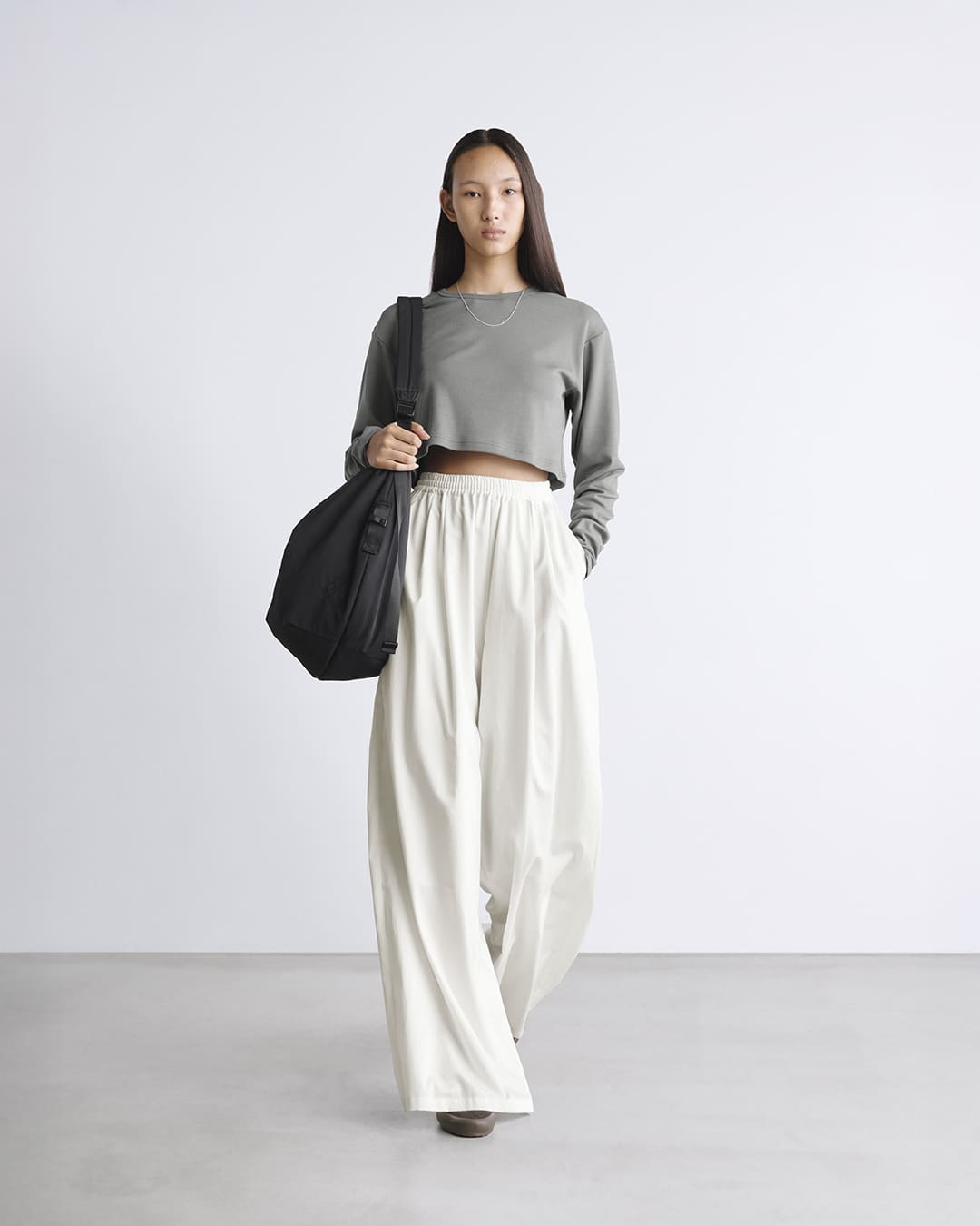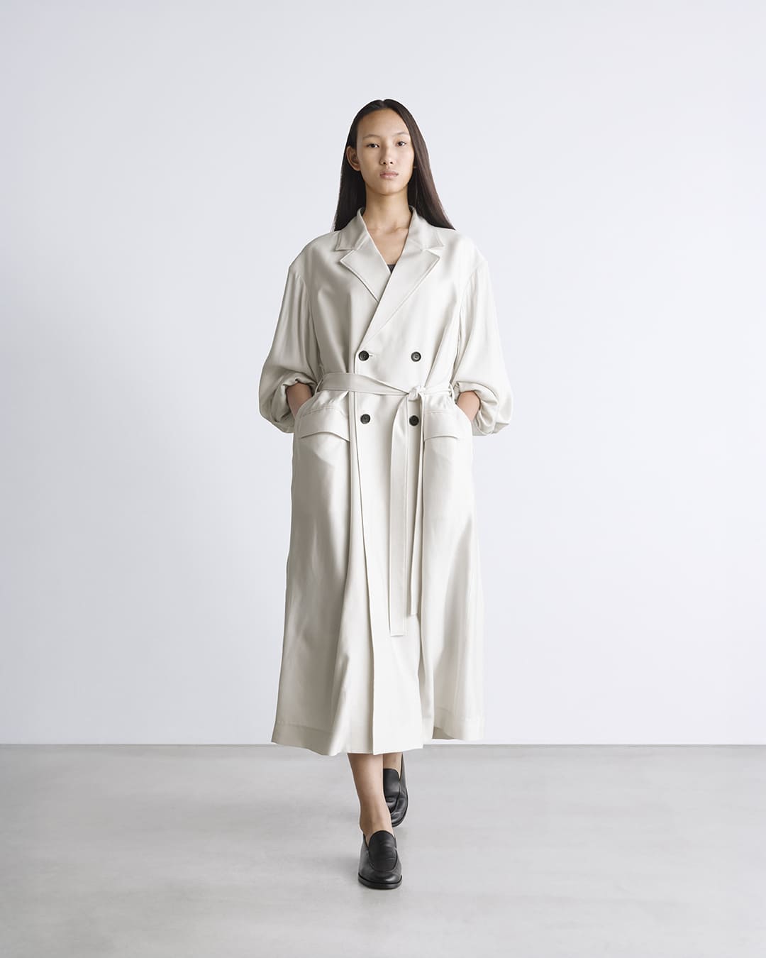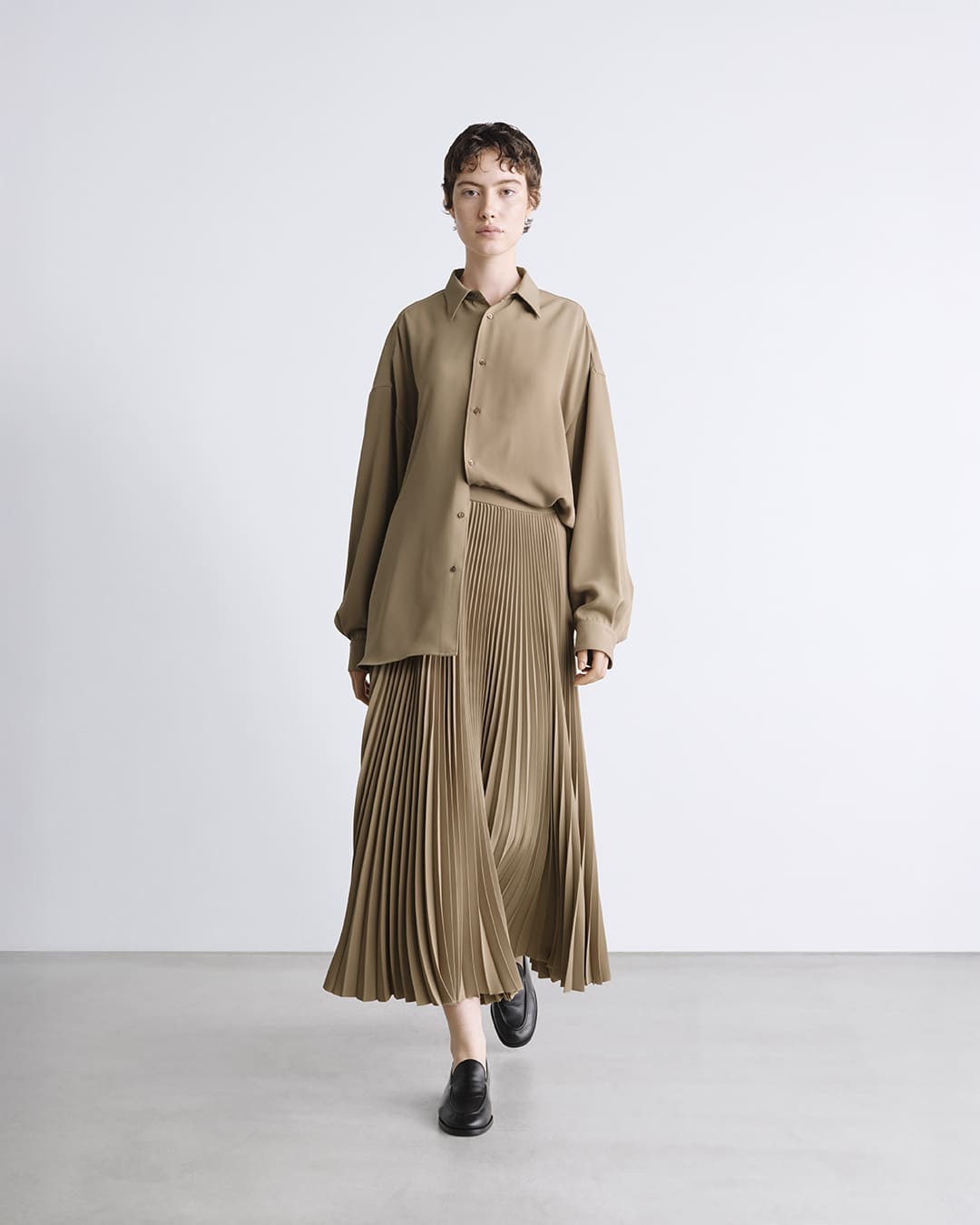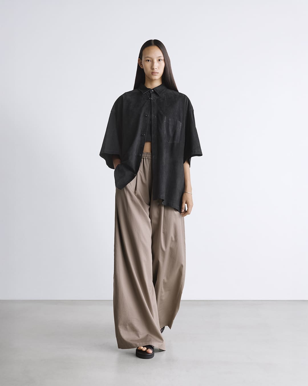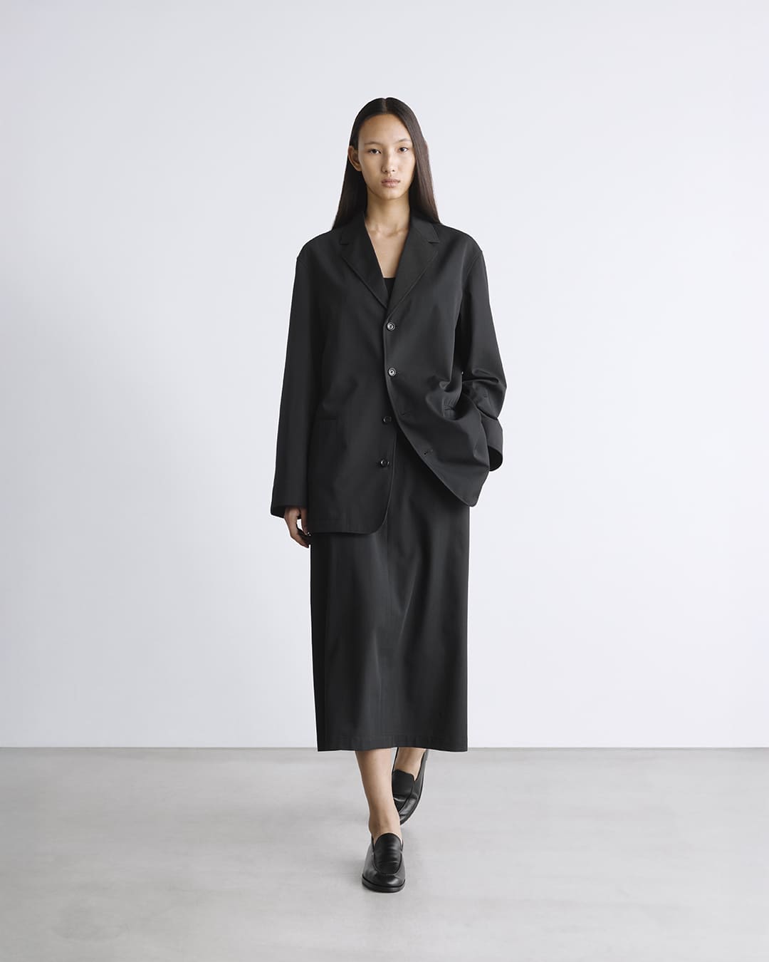最新コレクションでは1980〜90年代に日常の装いの一部として存在したスーツやスラックスを、現代のシルエットと独自のミニマリズムで再解釈し、過去のドレスコードの残像を再構築。テーラリングの文脈を踏まえながらも、シルエットは緩やかに拡張され、重心やバランスが再考されている。