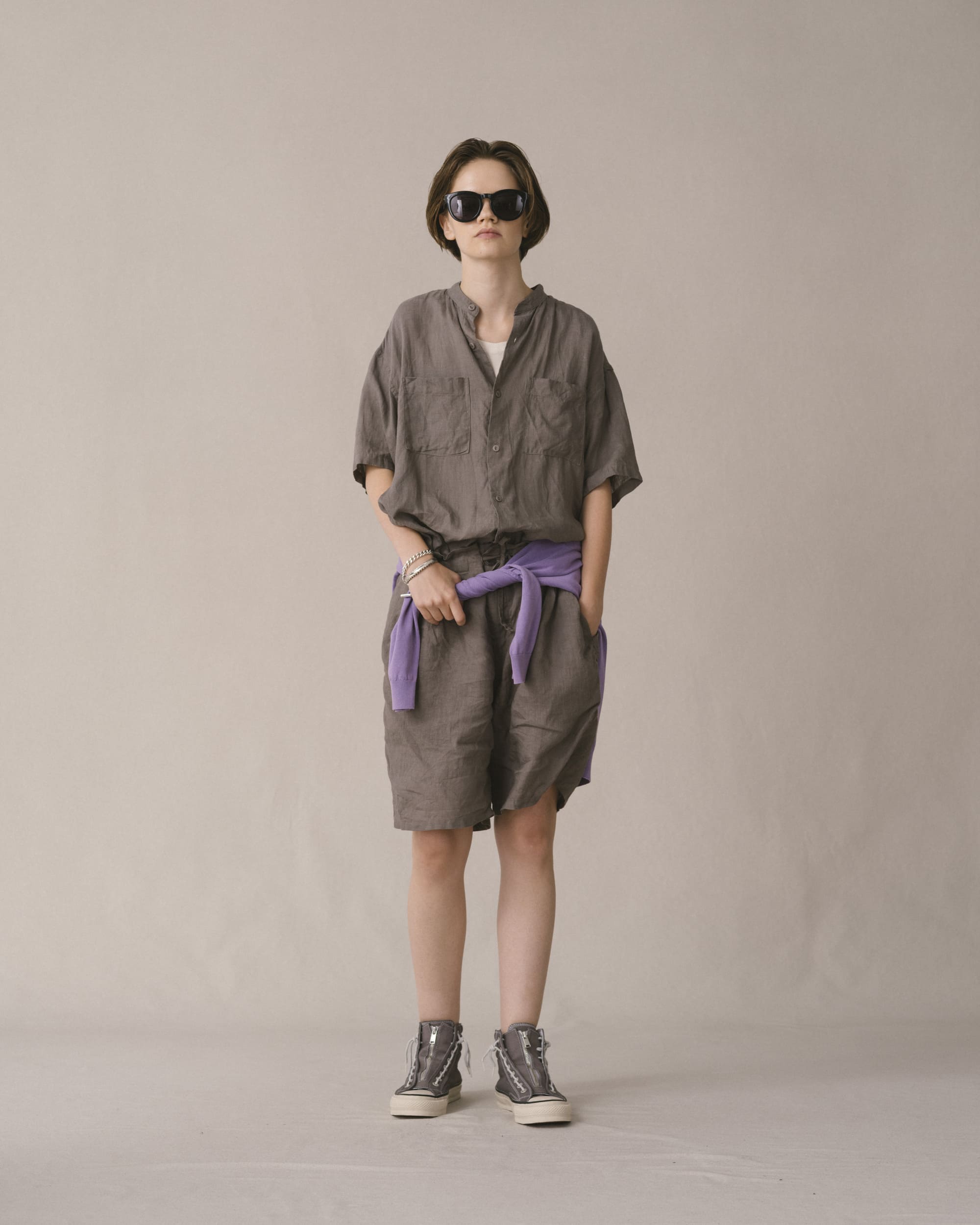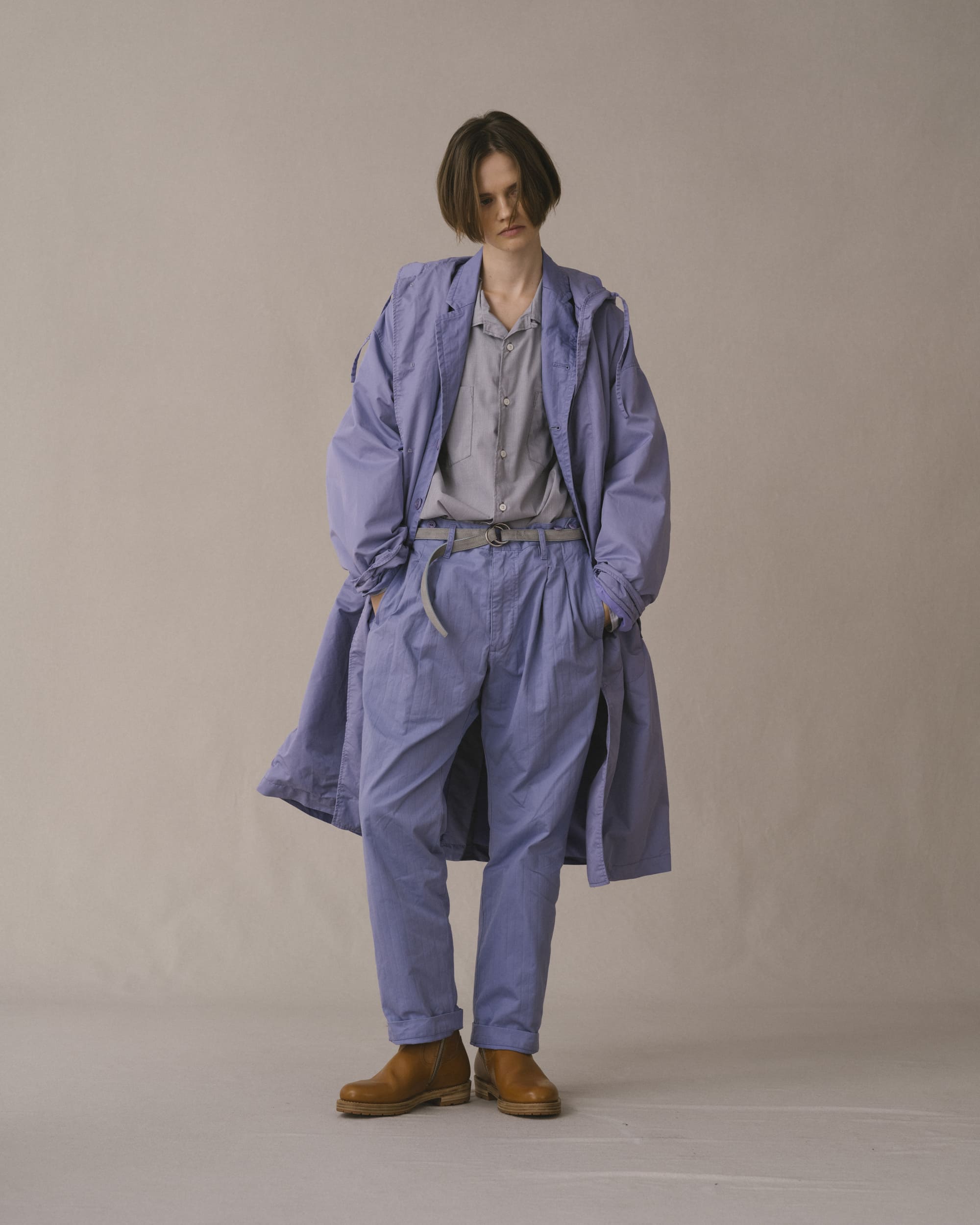 nonnativeのスタイルを体現するパンツにおいては、先シーズンから継続する“NR/ナロー”と“TP/テーパード”に加え、今シーズンはフレアシルエットの“FL/フレア”が追加された3バリエーション展開になっている。