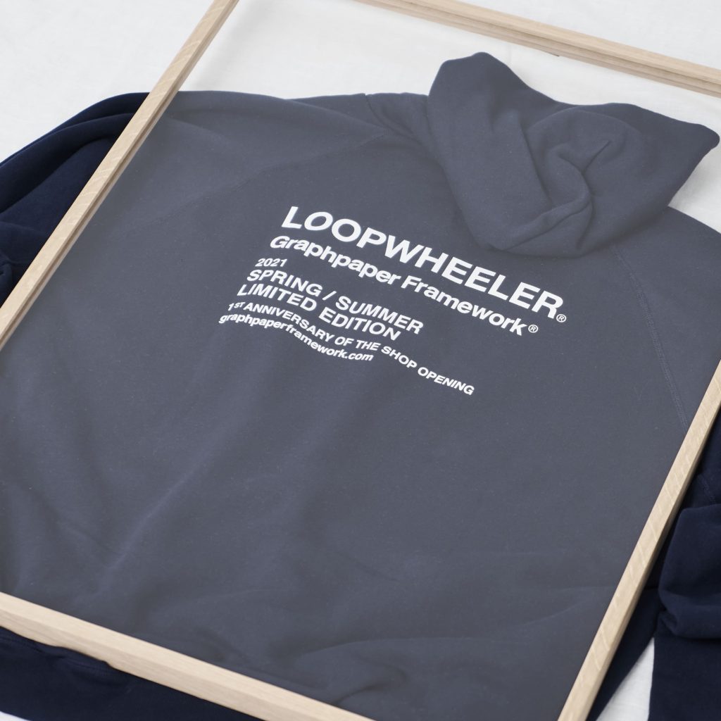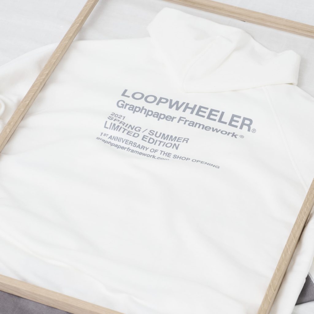 また今回はGraphpaper Frameworkの1周年を記念し、定番モデルから過去にリリースしたモデルにまでオリジナルプリントを施し、LOOPWHEELERとのこれまでの取り組みを一つの作品と見立てて展開するリミテッドアイテムも登場している。こちらは「Graphpaper Framework」限定での発売で、オンラインは3月29日(月)から。