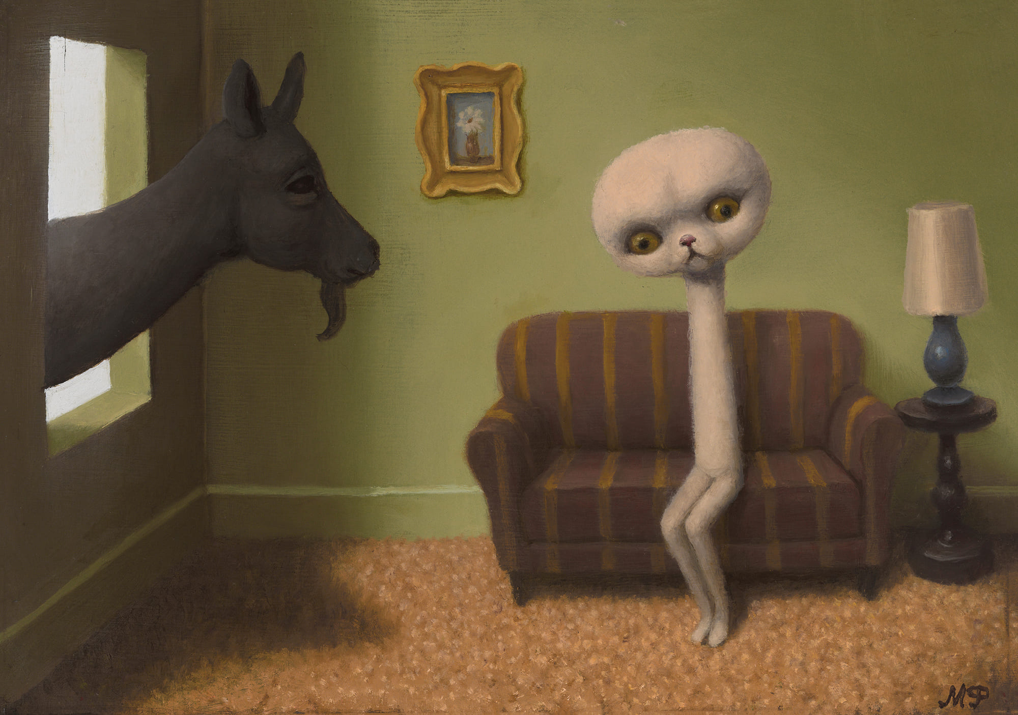 マリオン・ペックは、南カリフォルニアを発端とするロウブロウ・アート、そこから派生したポップ・シュルレアリスムを代表する作家の一人とされており、今回展示される小さな木版に描かれた緻密な油彩画の新作群においては、宗教絵画の影響とともにペック独自の奇妙な世界観を感じることができる。