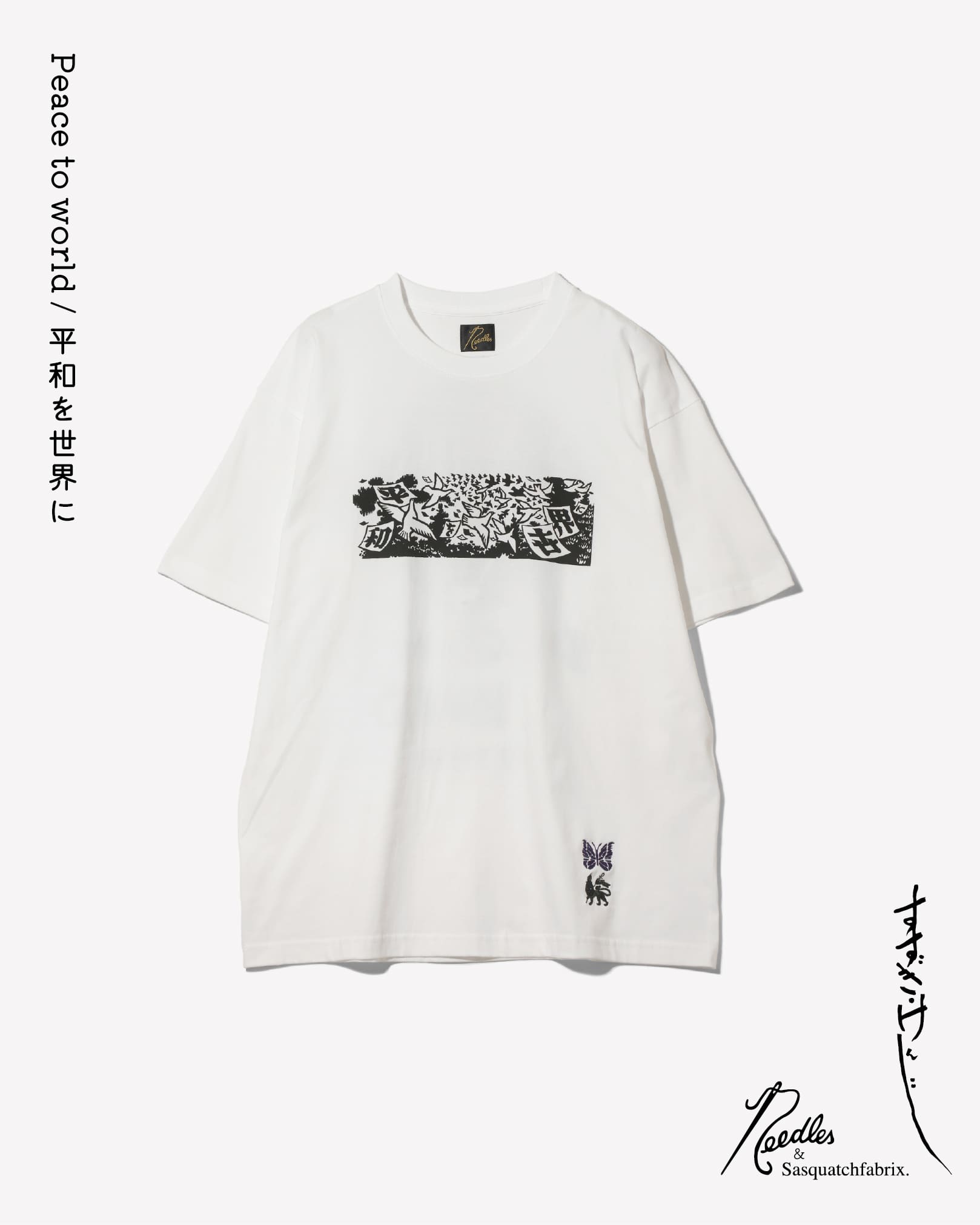 NEEDLES(ニードルズ)と Sasquatchfabrix.(サスクワッチファブリクス)が、版画家・鈴木賢二氏の代表作「平和を世界に」に焦点を当てたカプセルコレクションを発表した。