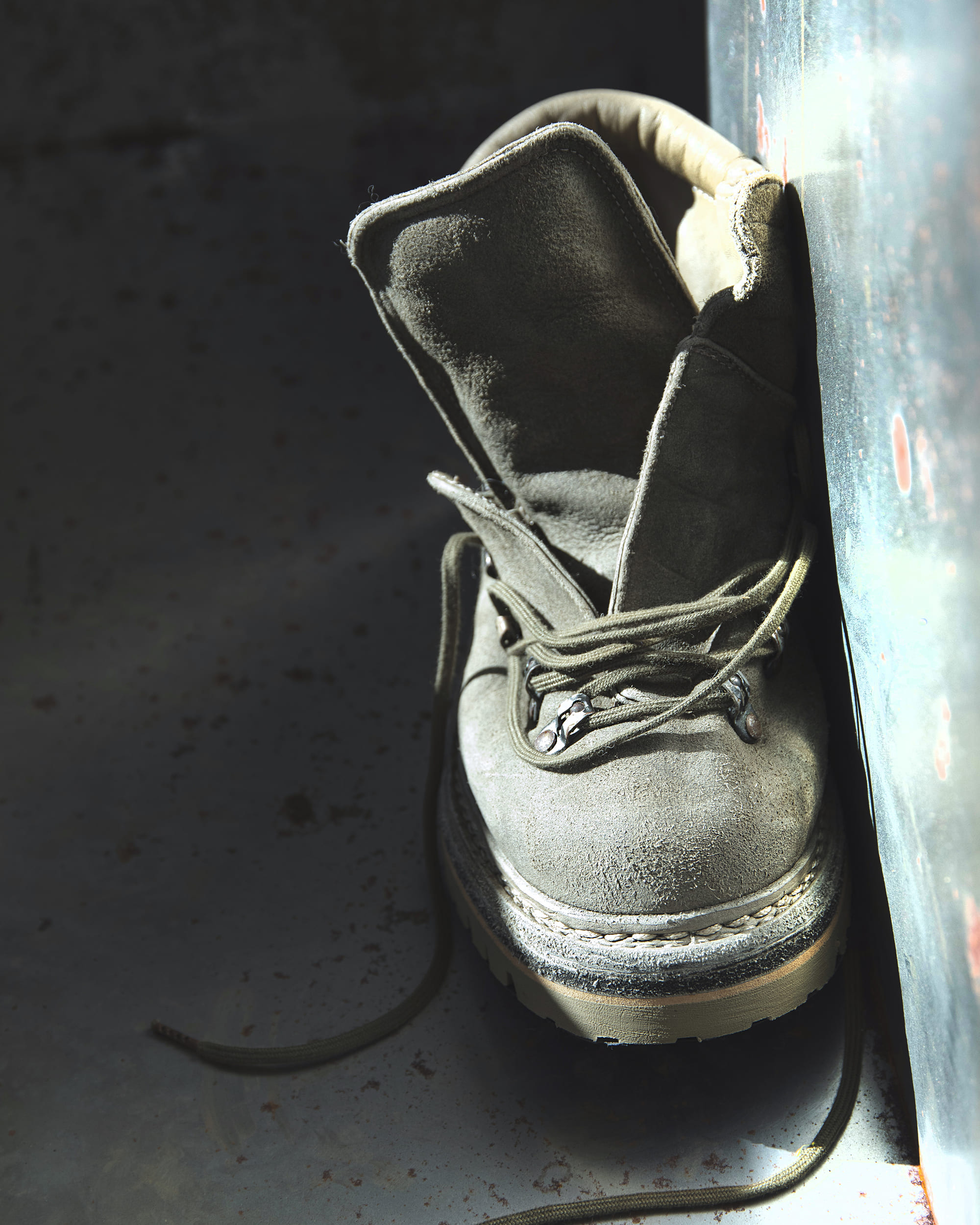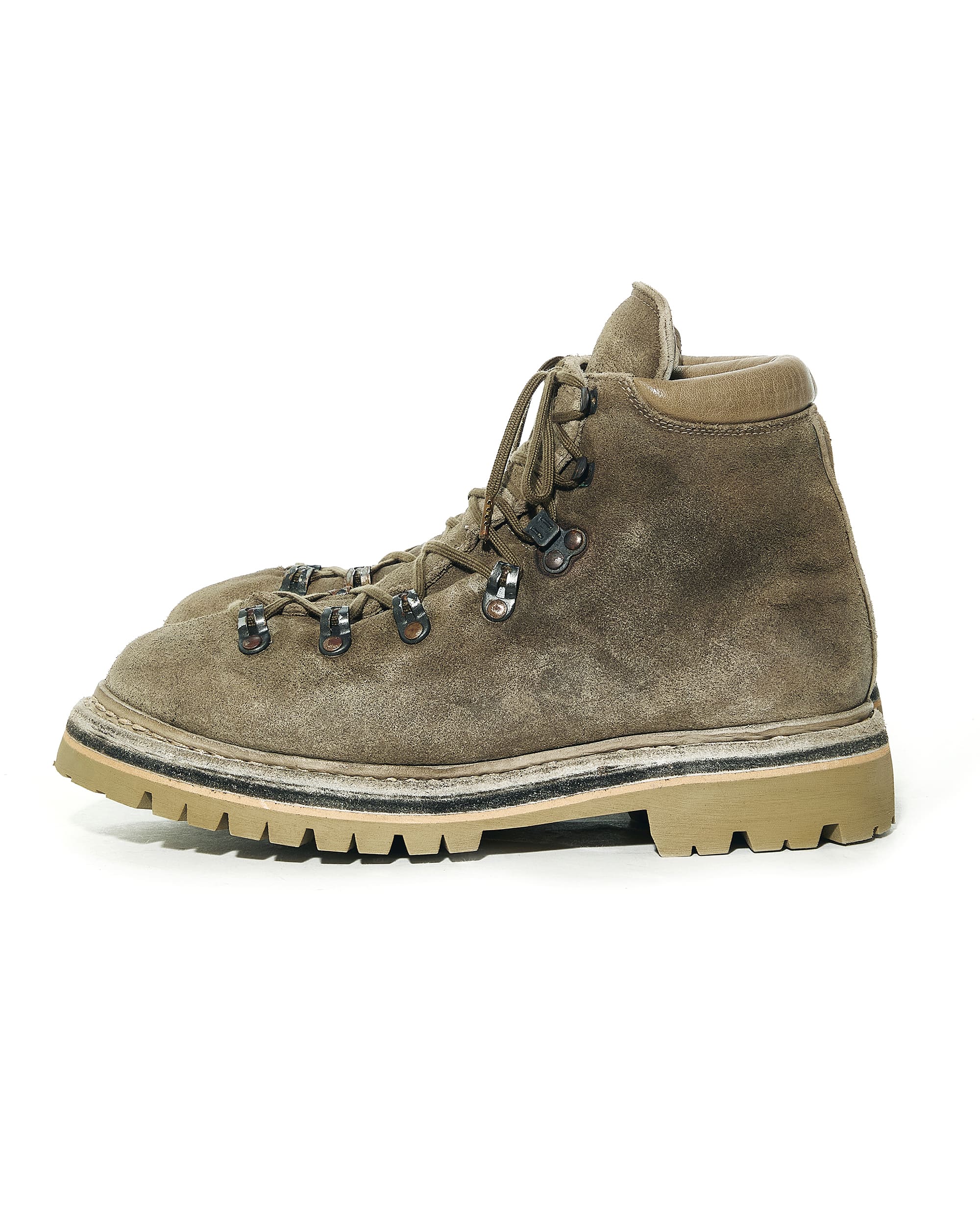 今回は約2年振りのリリースとなる“HIKING BOOTS”の新作がリリースされる。シャープなルックスが特徴的なGUIDIのラインナップ中において、とりわけラギッドな存在感を放つモデルで、そこに”VINTAGE KHAKI”と名付けられたカラーリングを施して登場。彩度を抑えた淡いトーンを、GUIDI独自のタンブラー染色することで、他では実現し得ない深く豊かな表情を生み出しているという。このカラーは、nonnativeとのコラボレーションによる2024年の“BACK ZIP BOOTS”、2025年の“ZIPPER UNIT BOOTS- BIG DADDY“に続き、本モデルが3作目。両者のアイコニックなカラーにもなっている。