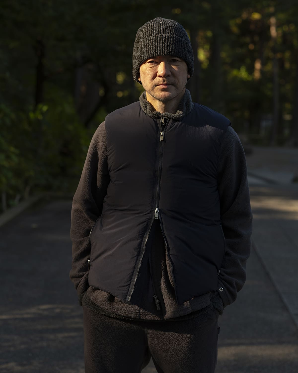 そして藤井氏と高橋氏がリスペクトを寄せ、ブランド名の由来ともなっている日本の映画監督の巨匠・小津安二郎が眠る寺院で撮影されたという今回のLOOKビジュアルには、俳優の浅野忠信氏が登場しており、OZISMらしい世界観の中で存在感を発揮している。