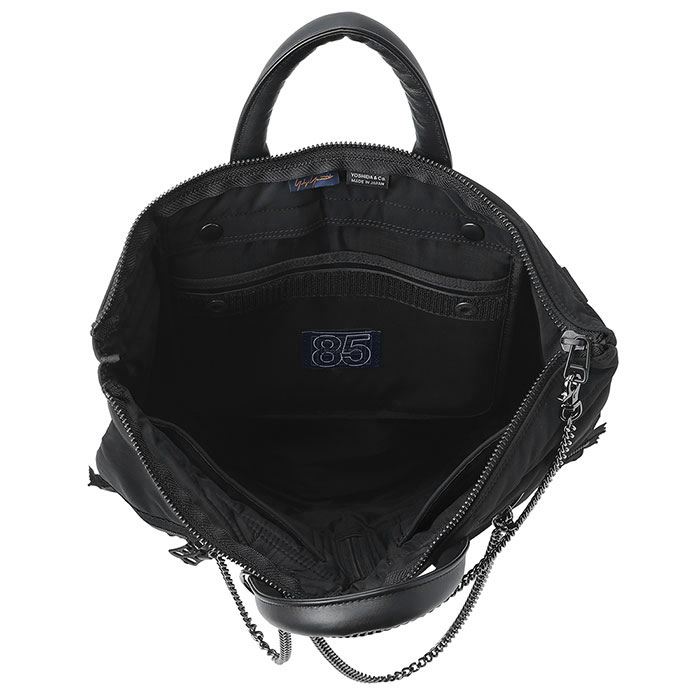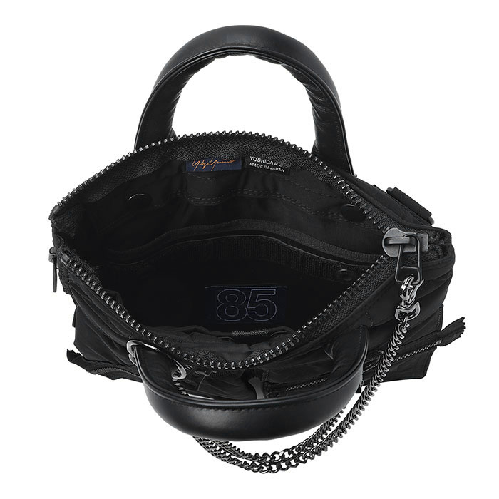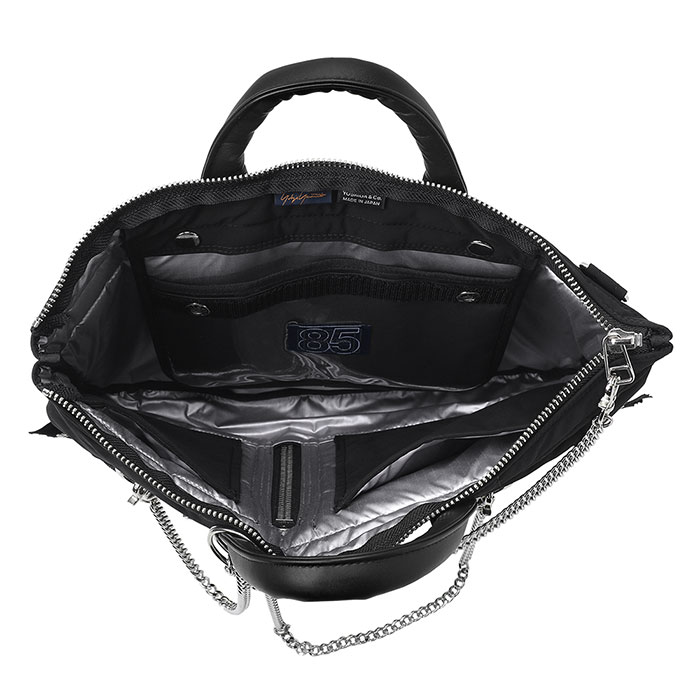吉田カバン創業85周年プロジェクト最終章はヨウジヤマモトとの初コラボ。深くマットに仕上げた黒の生地にファスナーやチェーン使いが印象的