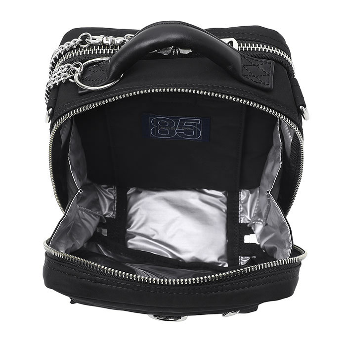 何より印象的なのは、デザインと機能性を兼ね備えた特徴的なファスナー使いと、自由に付け替えが可能な長さの異なるチェーン。ヘルメットバッグ3型には取り外し可能な内装ポケットが付属し、ポーチ単体としても使用可能になっている。