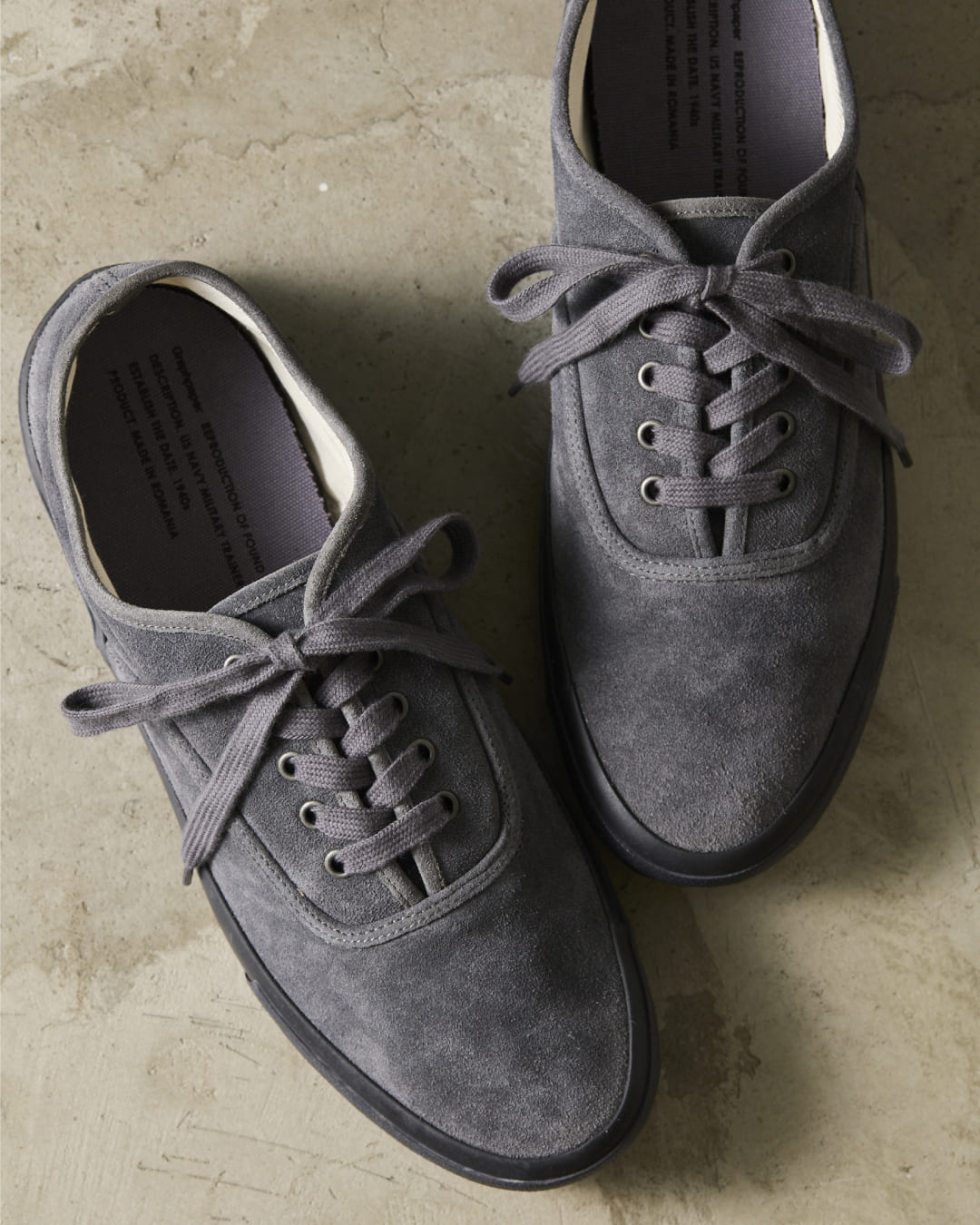 両者によるコラボレーションは継続的に行われているが、今回は1940 年代にアメリカ海軍でトレーニングシューズとして採用されていたモデルをベースに、軍用シューズを手掛けていたファクトリーに製作を依頼。