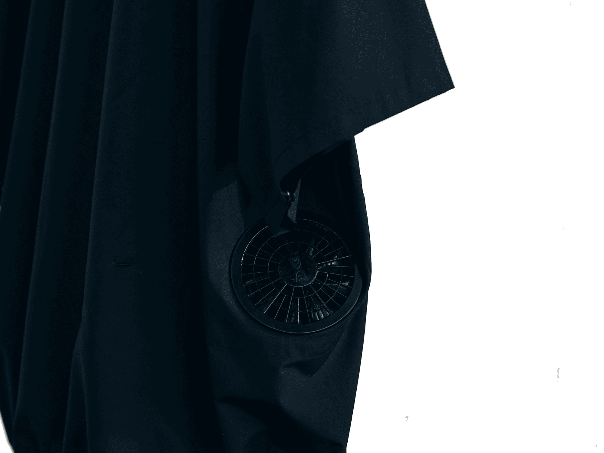 新作はジップアップ式になり、⽔を滑らせて⾬をよける撥⽔ファブリックMINOTECHを採⽤するなどアップデートされており、酷暑をファッショナブルに乗り切るアイテムとして進化を遂げている。クラウドファンディング GREEN FUNDINGにて、4⽉3⽇(⾦)より受注受付を開始。一般販売はなく、7月にデリバリーを予定しているので、気になる人はお早めに。