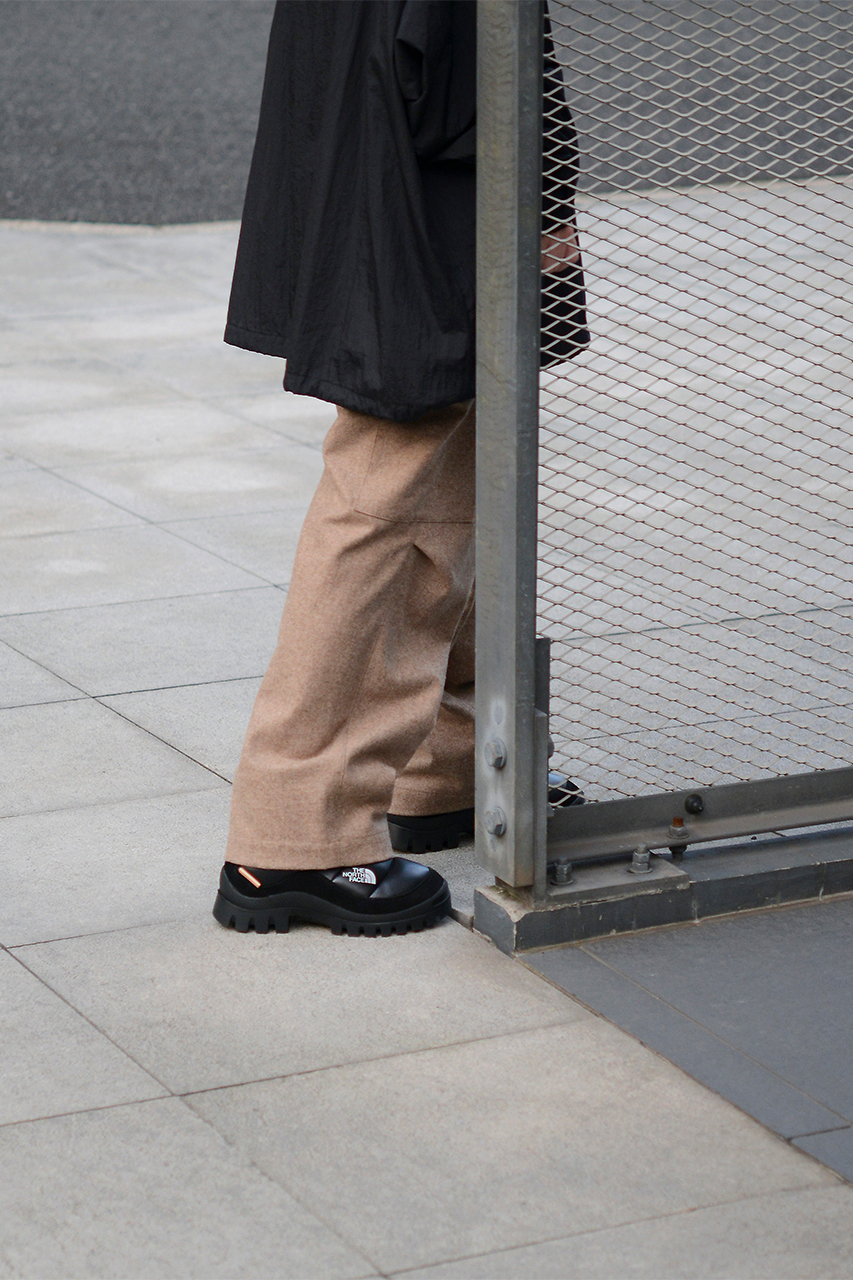 ご存知の通り[エンダースキーマ]は、創造性高いレザーシューズを生み出すことで知られる日本ブランド。今回コラボレーションした[ザ・ノース・フェイス]の“ヌプシダウンブーティ”は、高所登山や極地遠征などに挑む冒険家の足元を保温するために、雪上のテントまわりやテント内で履くブーツとして2006年に誕生したもの。ダウンを取り入れたシューズは、冬場の街でも人気となった。