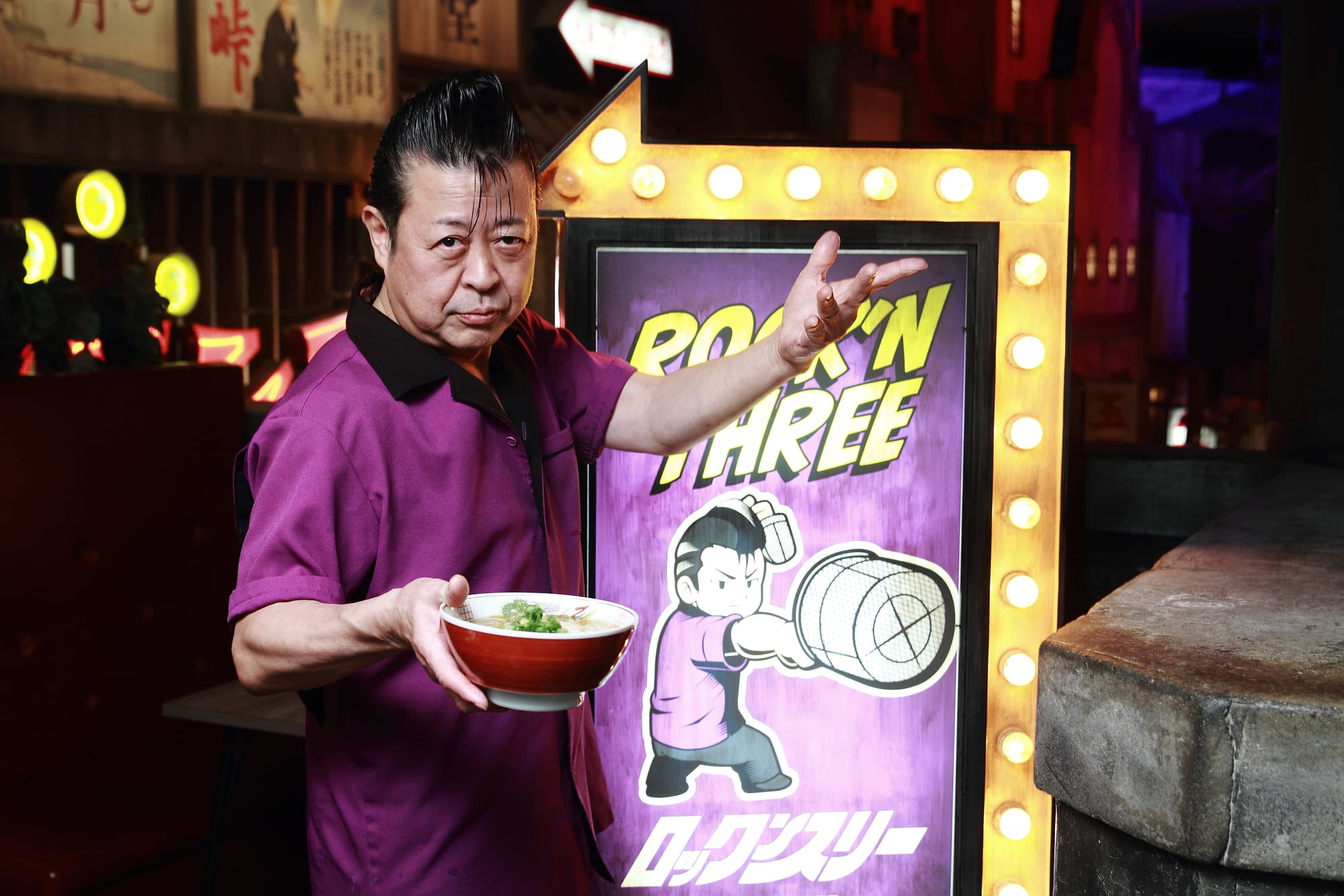 ちなみにビジュアルのモデルには、日本のラーメン業界において「生きる伝説」と称される孤高のラーメン職人であり、新横浜ラーメン博物館『ロックンスリー』の嶋崎順一氏が登場している。