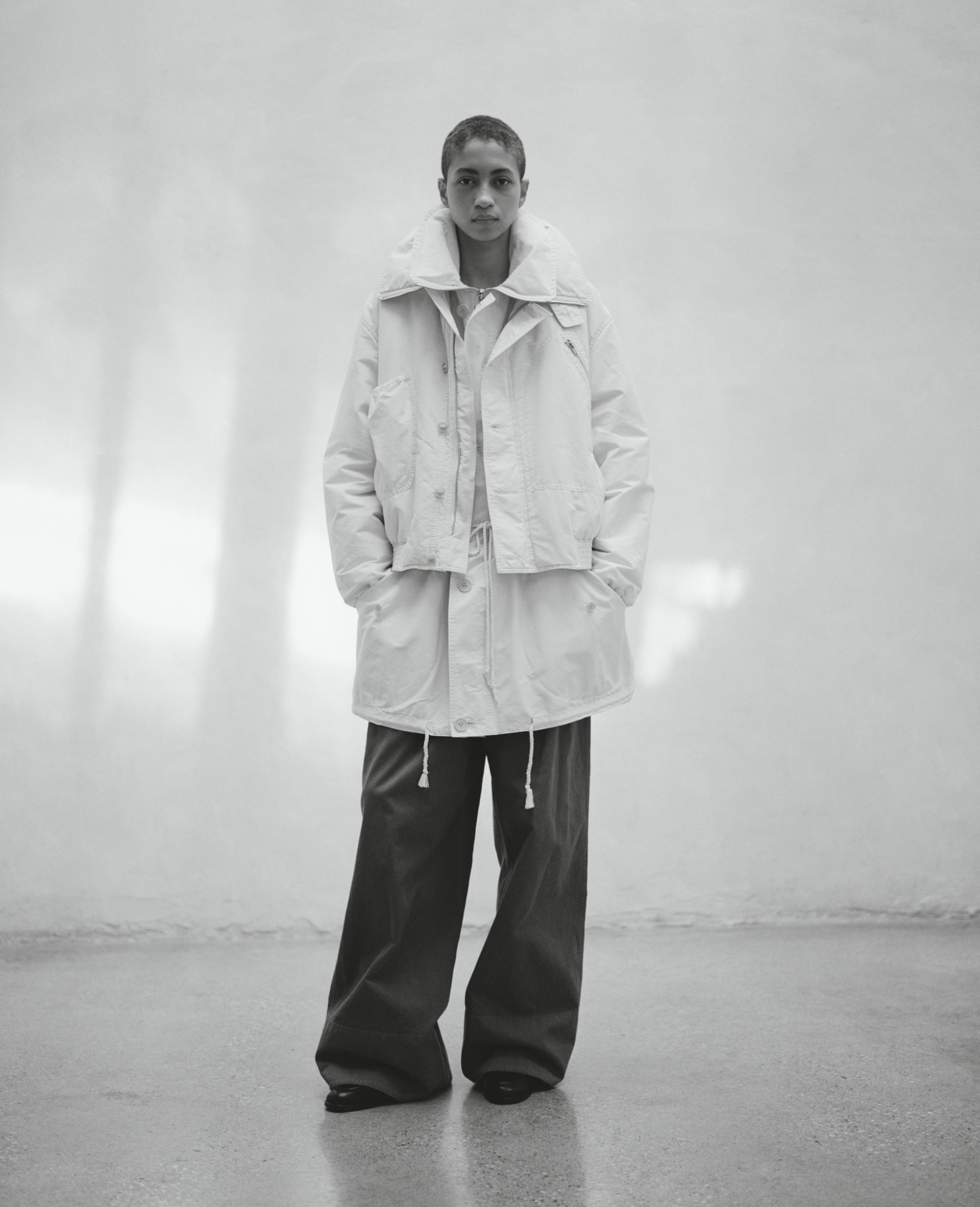 アイテムのラインナップは、ハーフコート、ブルゾン2型、パンツ、シャツ、スウェットシャツの全6型で、オリジナルの完成度の高さと、現在のYOKEの卓越した表現力の両方を感じられるものとなっている。