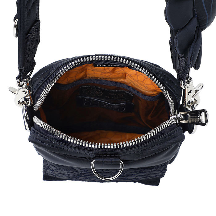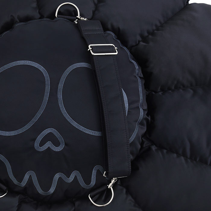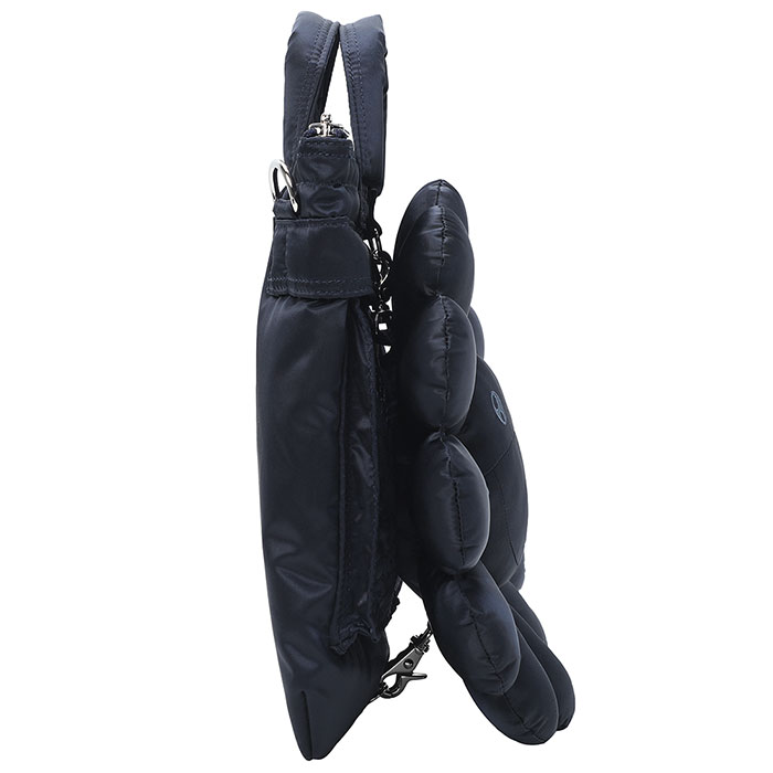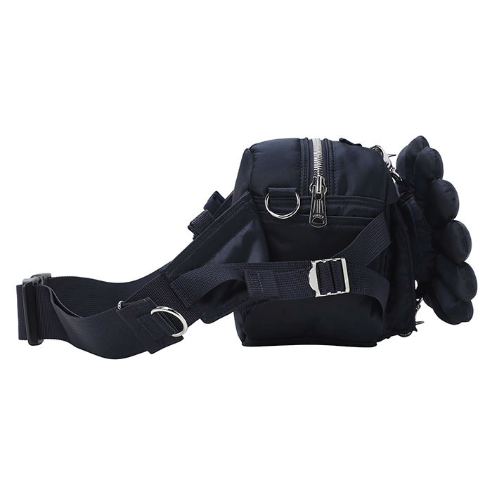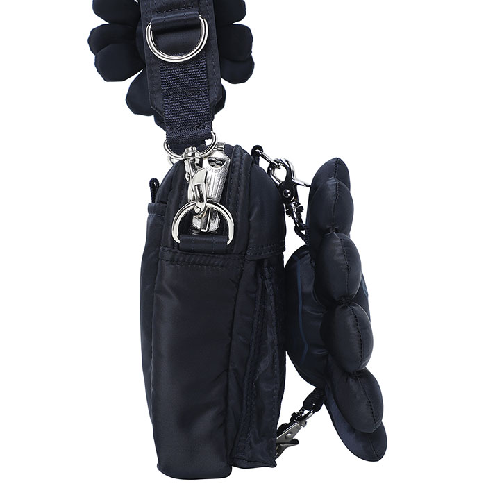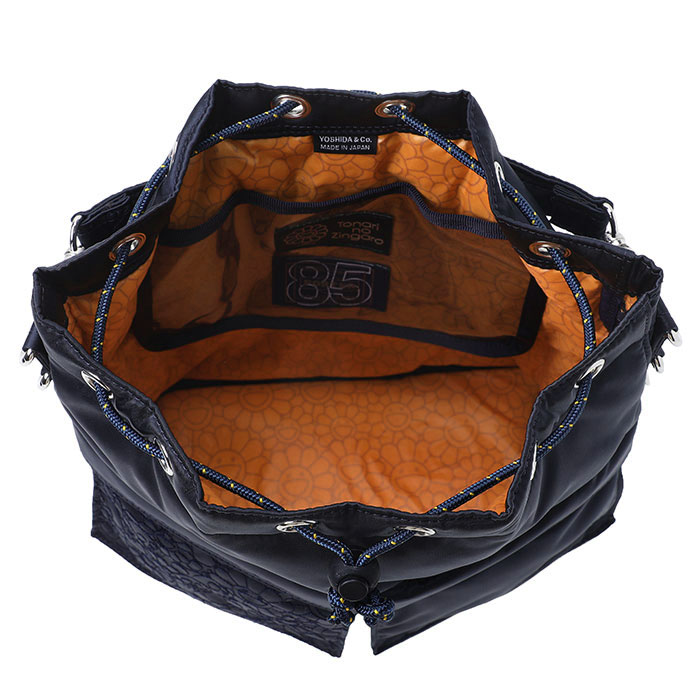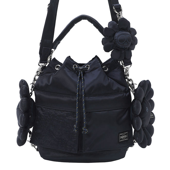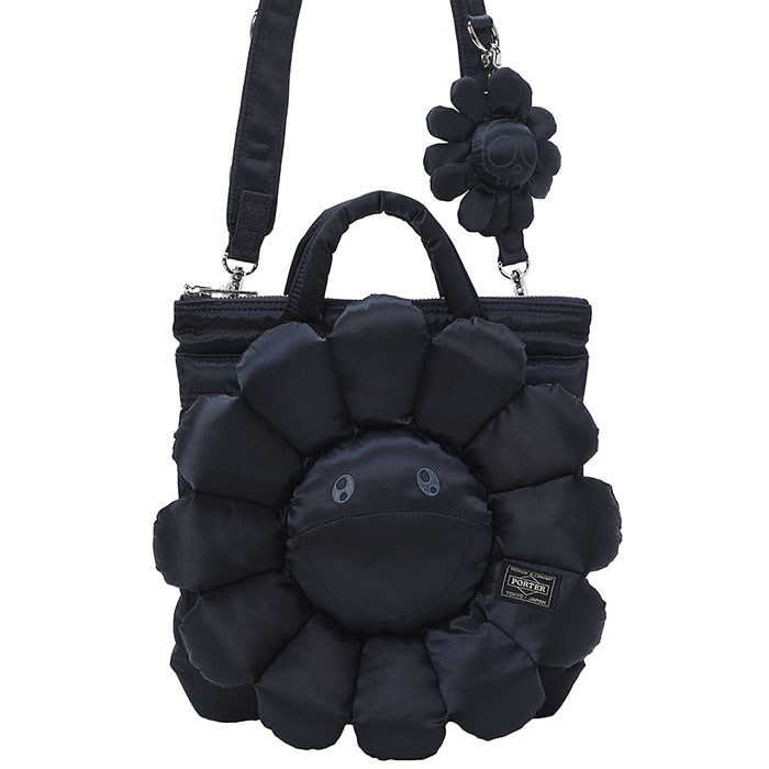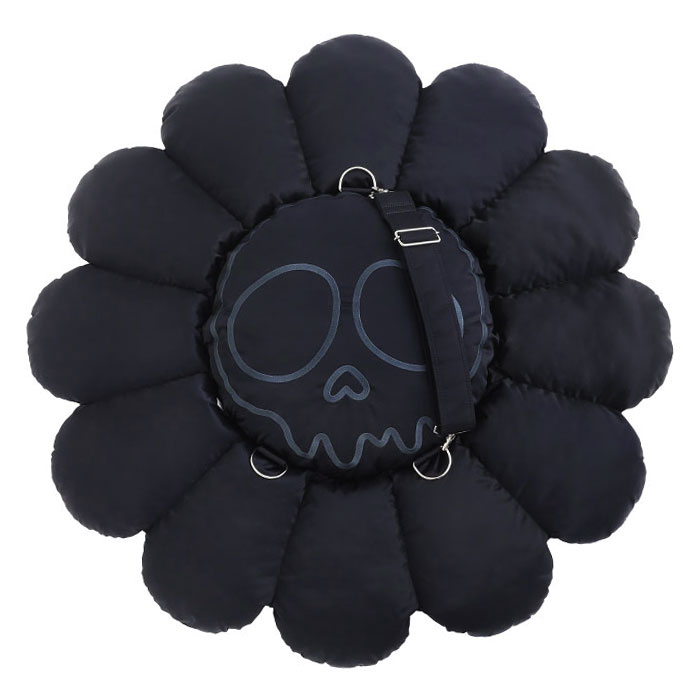村上隆でおなじみの“お花”モチーフがバッグから取り外し可能になっているが、その“お花”の一部に“ドクロ”を溶け込ませたインパクトのあるアートを採用。内装と付属の巾着にも“お花”がプリントされているなど、[ポーター]の高い技術も遺憾なく発揮されている。